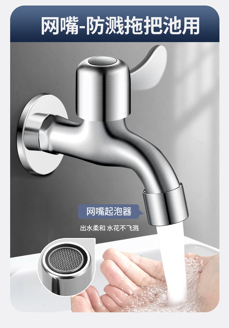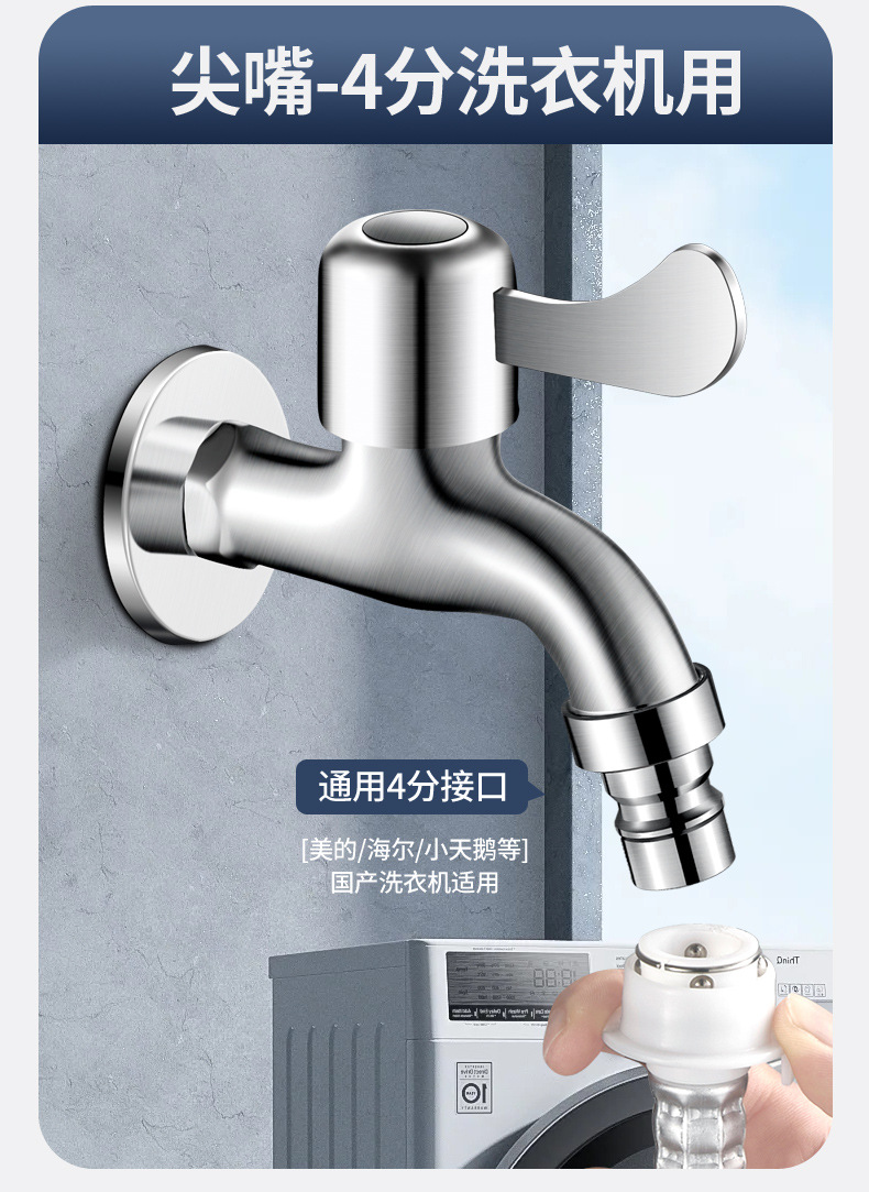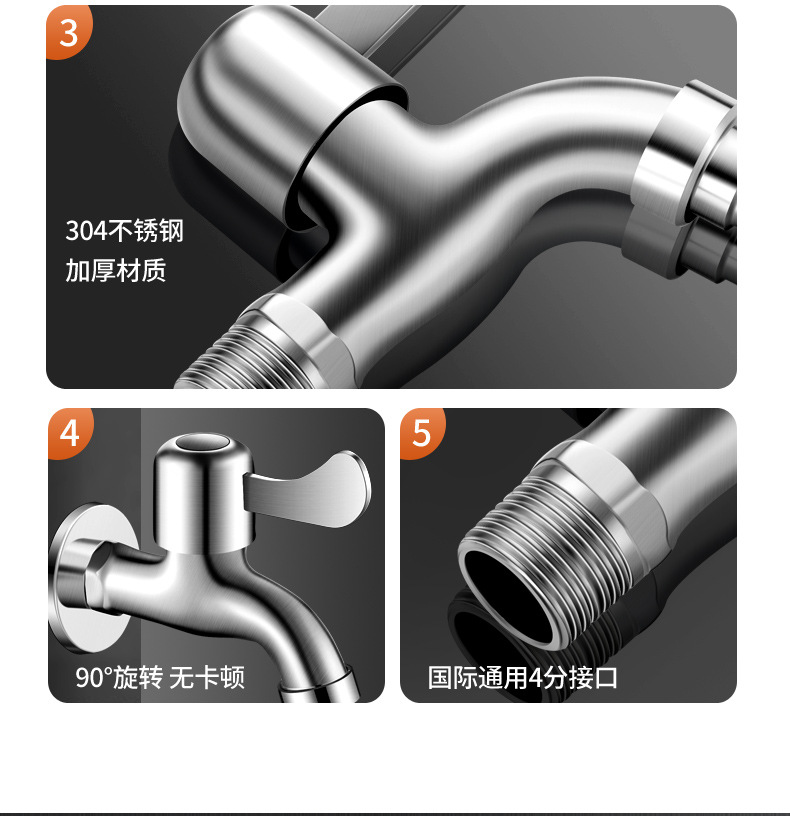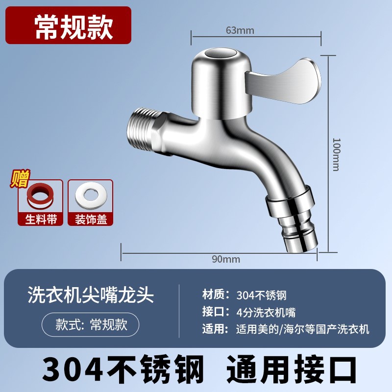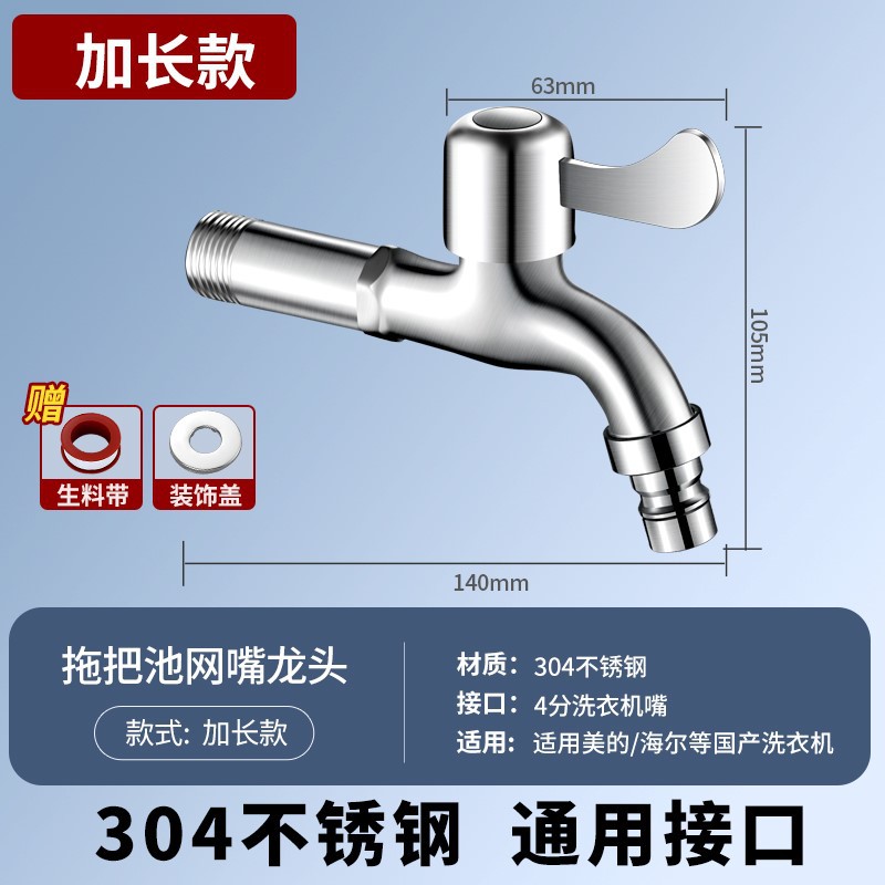 304 스테인레스 스틸 세탁기 수도꼭지 가구 길어진 걸레 수영장 2 개 중 1 개 유니버설 4 포인트 싱글 콜드 수도꼭지