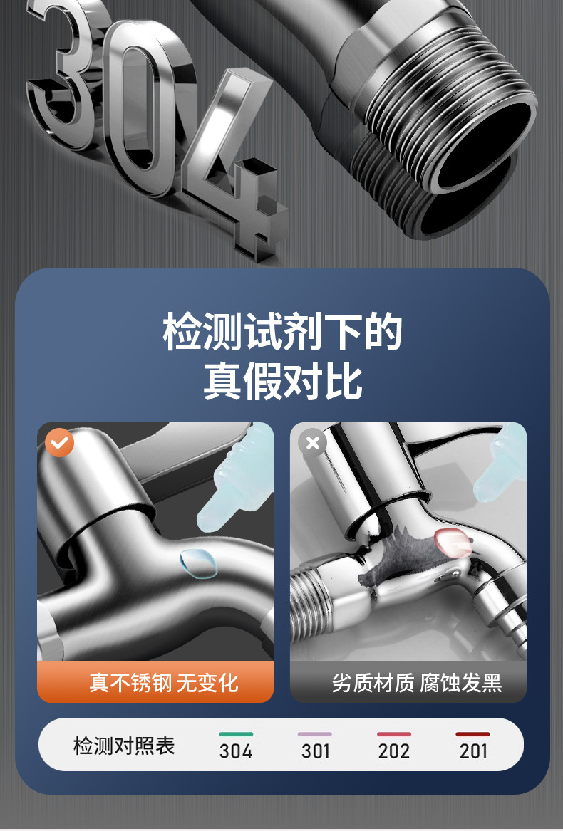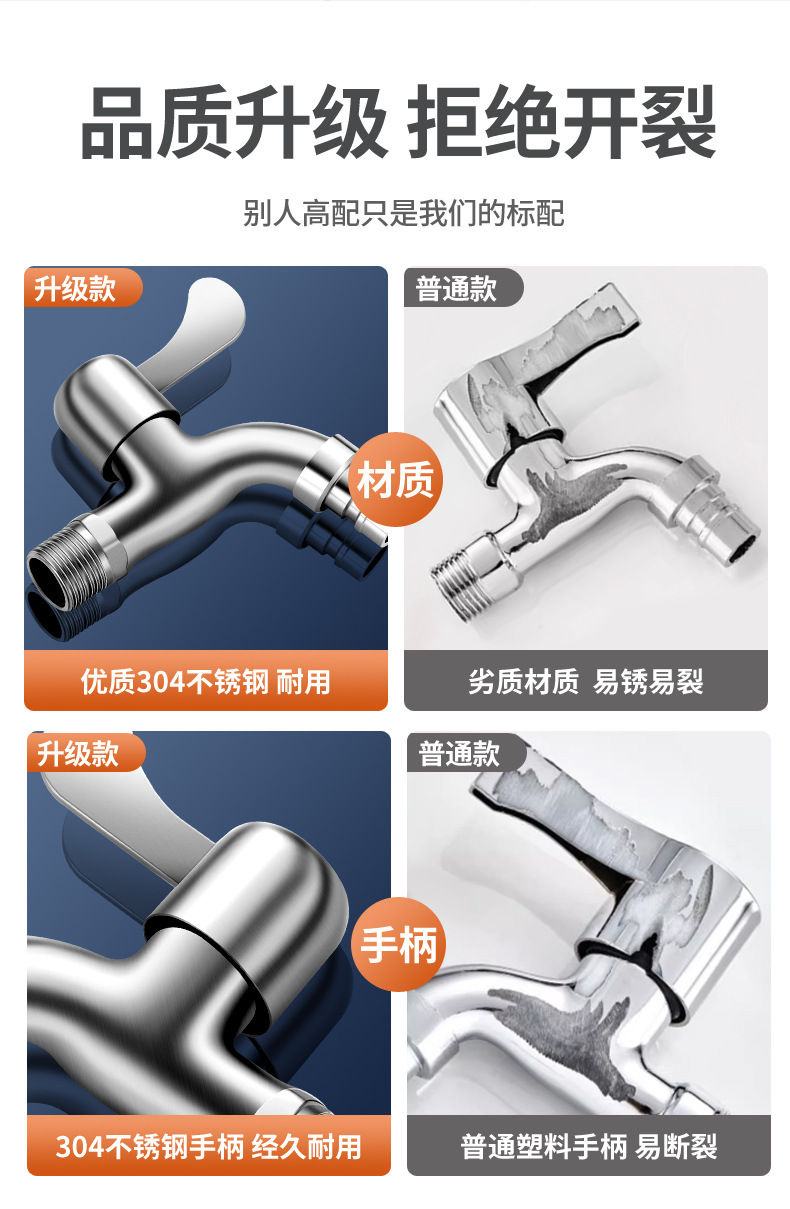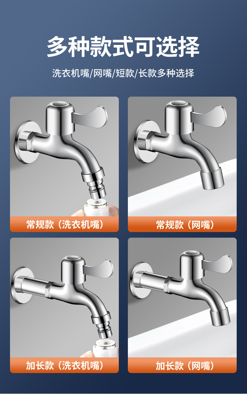 304 스테인레스 스틸 세탁기 수도꼭지 가구 길어진 걸레 수영장 2 개 중 1 개 유니버설 4 포인트 싱글 콜드 수도꼭지