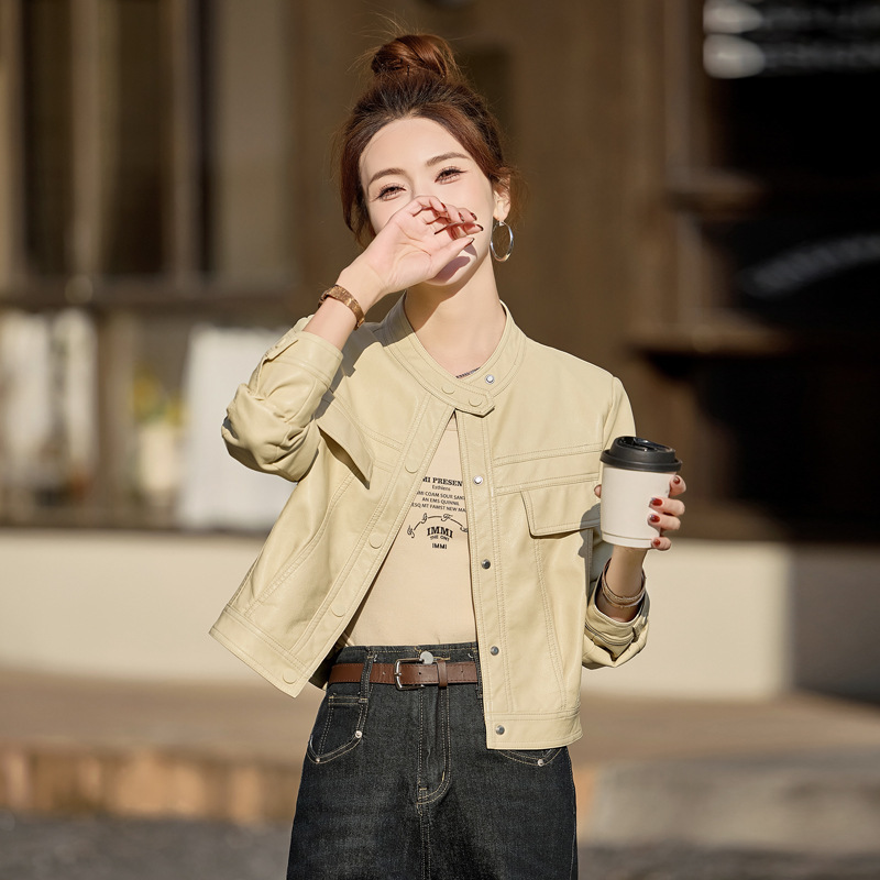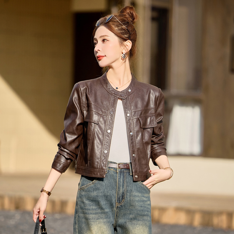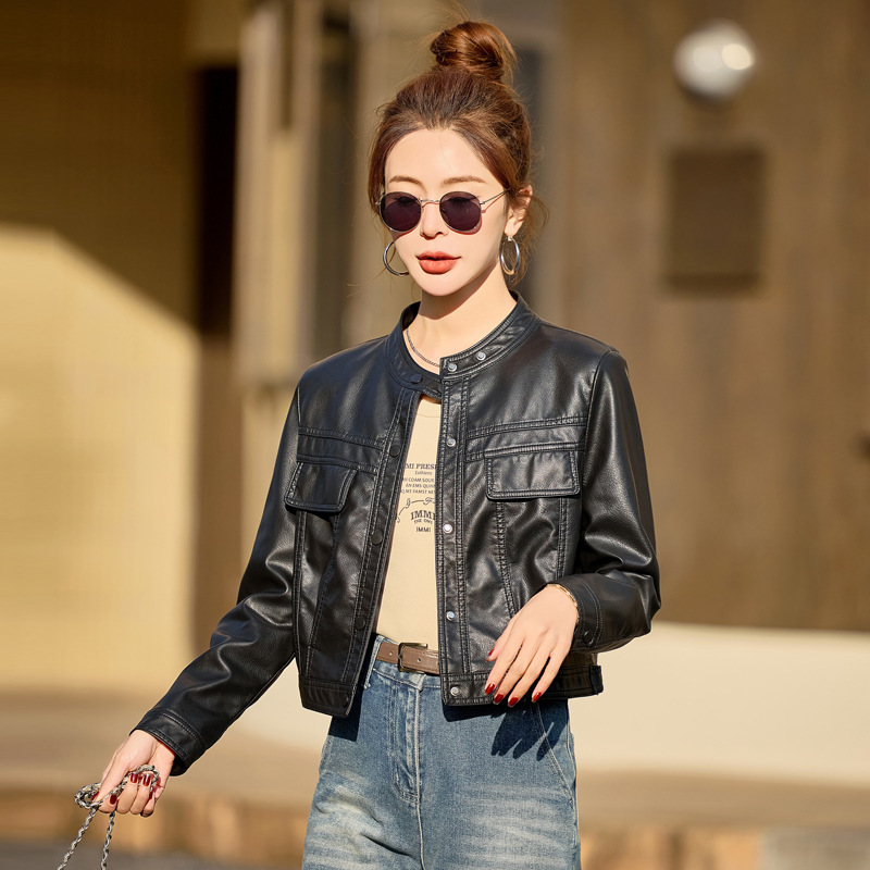 가죽 코트 여성의 2025 새로운 봄과 가을 짧은 패셔너블 가죽 자켓 탑스토어 가기