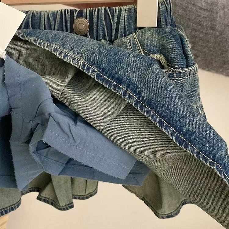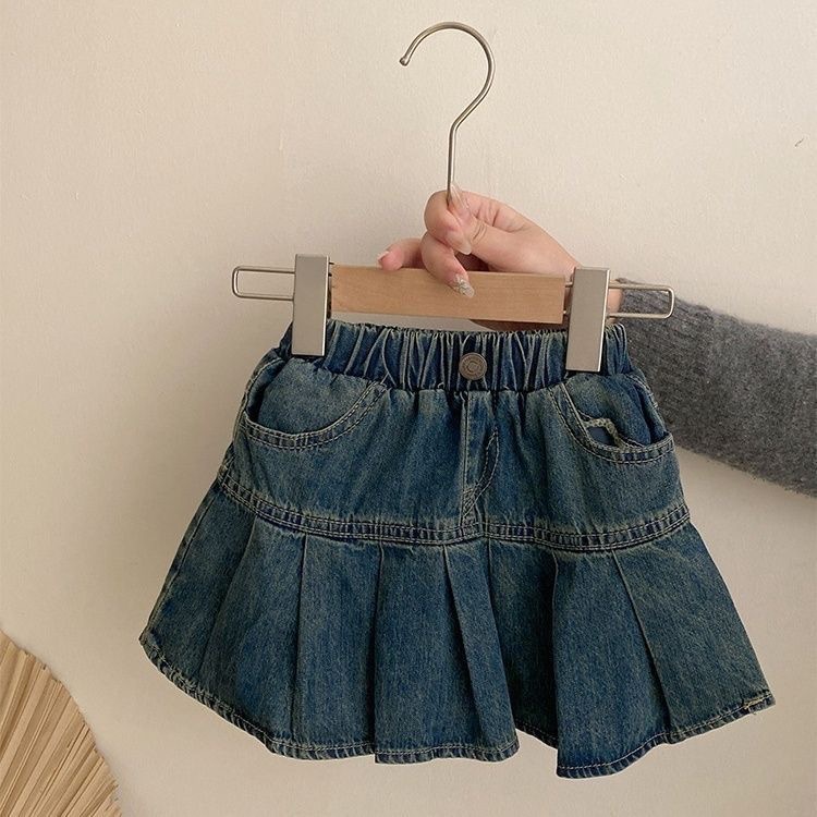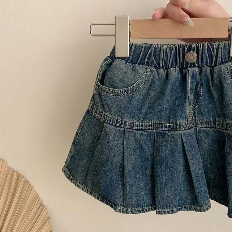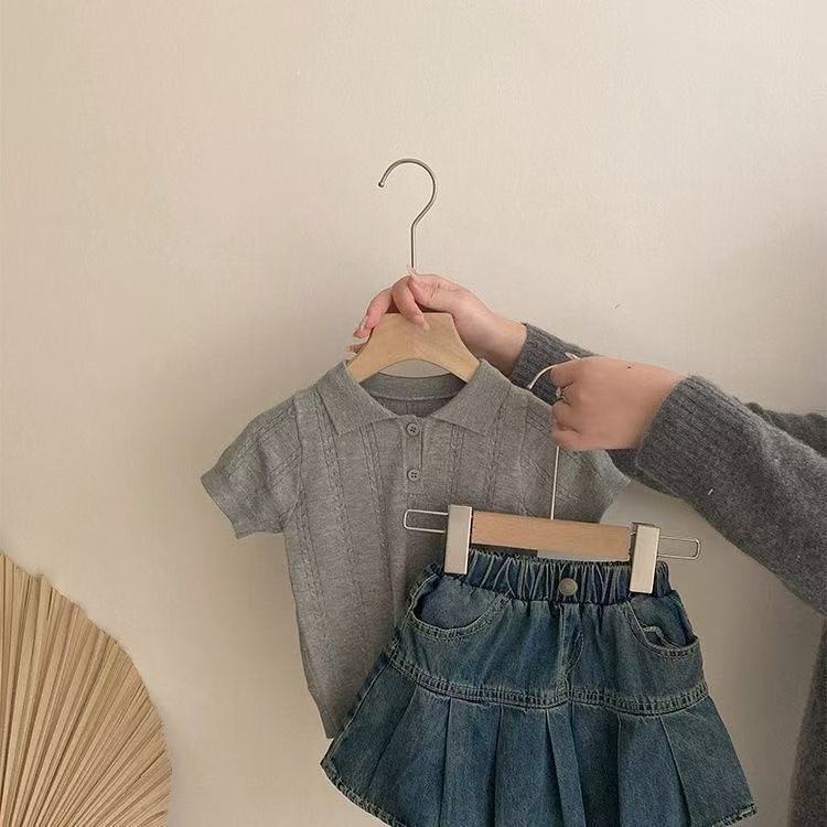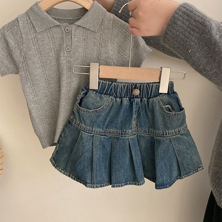 여자 대학 세트 2025 여름 아기 한국 스타일 소녀 스타일리스트 니트 짧은 소매 데님 주름 치마 여름 원피스스토어 가기