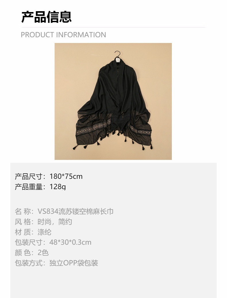 봄 새로운 술 할로우 코튼 리넨 긴 수건 대외 무역 핫 솔리드 컬러 스카프 편안한 부드러운 대형 목도리
