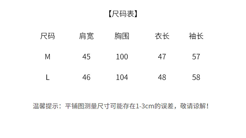 关于尺码:单位:cm,平铺手工测量,有2-4cm误差属于正常。