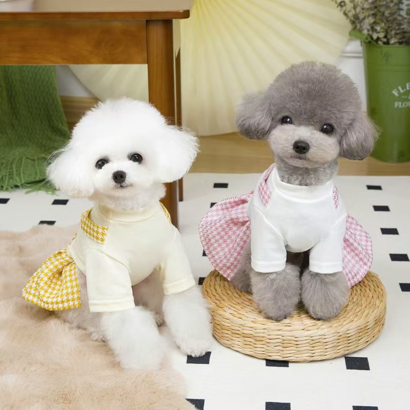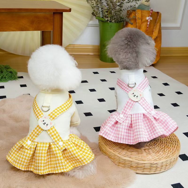 봄과 여름 새로운 애완 동물 의류 고양이 Bixiong 테디 크로스 스트랜드 원피스 고양이와 개 스커트 견인 개 옷