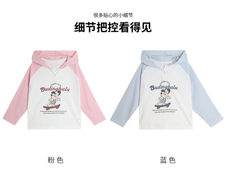 푸딩 하루 걸스 후드 티셔츠 2025 봄 새로운 어린이 만화 인쇄 Raglan 소매 긴 소매 탑스토어 가기