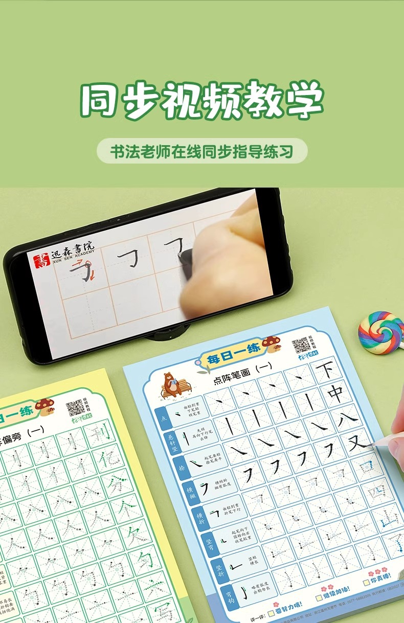 서예 및 뇌졸중 급진적 특수 운동 책을 연습하는 젊은 초등학교 계몽 초보자를위한 일일 연습 감압 카피 북스토어 가기