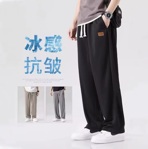 여름 얇은 캐주얼 바지 빠른 건조 느슨한 플러스 사이즈 스트레이트 바지 스트레치 착용 스포츠 아이스 실크 바지 남자스토어 가기