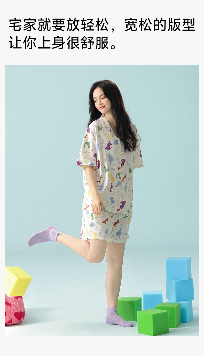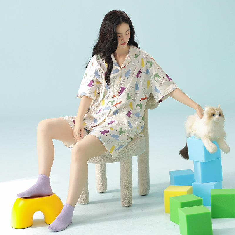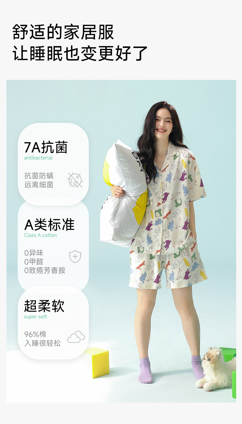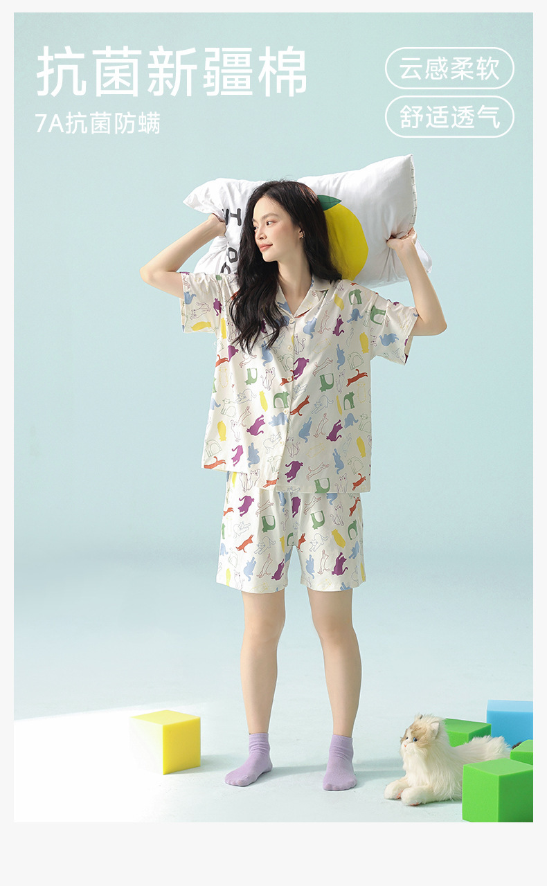 [항균성 신장면] 봄 · 여름 여성면 짧은 소매 만화 홈 의류 세트 A 급 랙 면 파자마스토어 가기