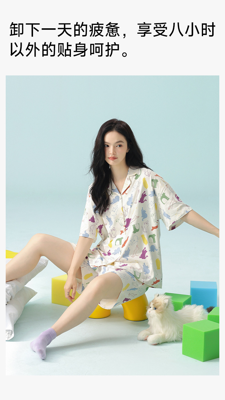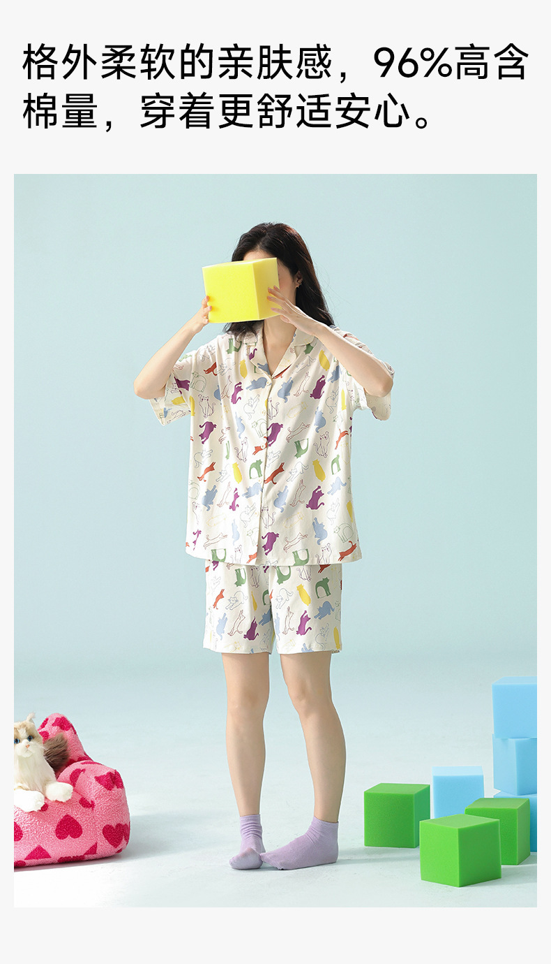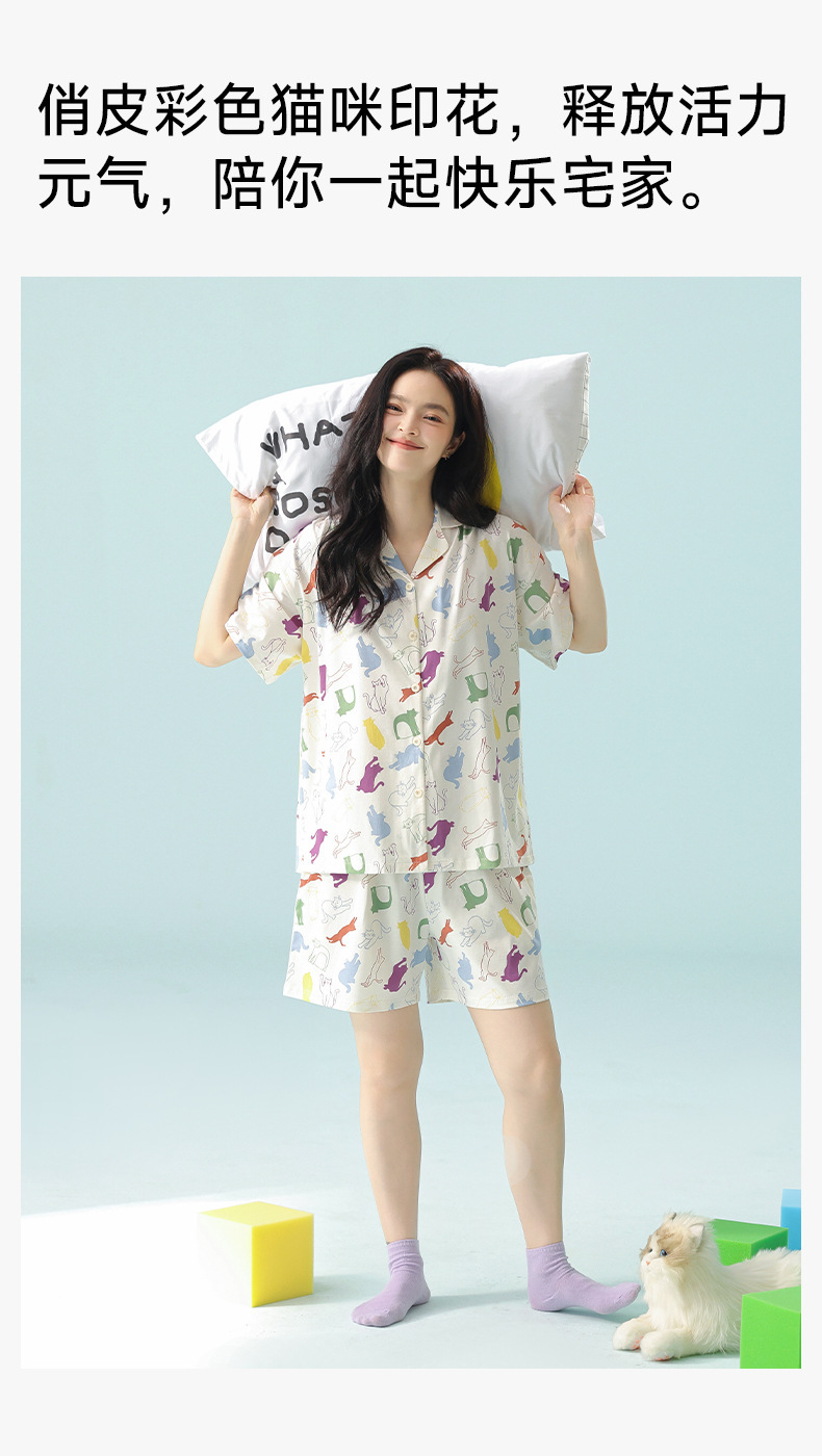 [항균성 신장면] 봄 · 여름 여성면 짧은 소매 만화 홈 의류 세트 A 급 랙 면 파자마스토어 가기