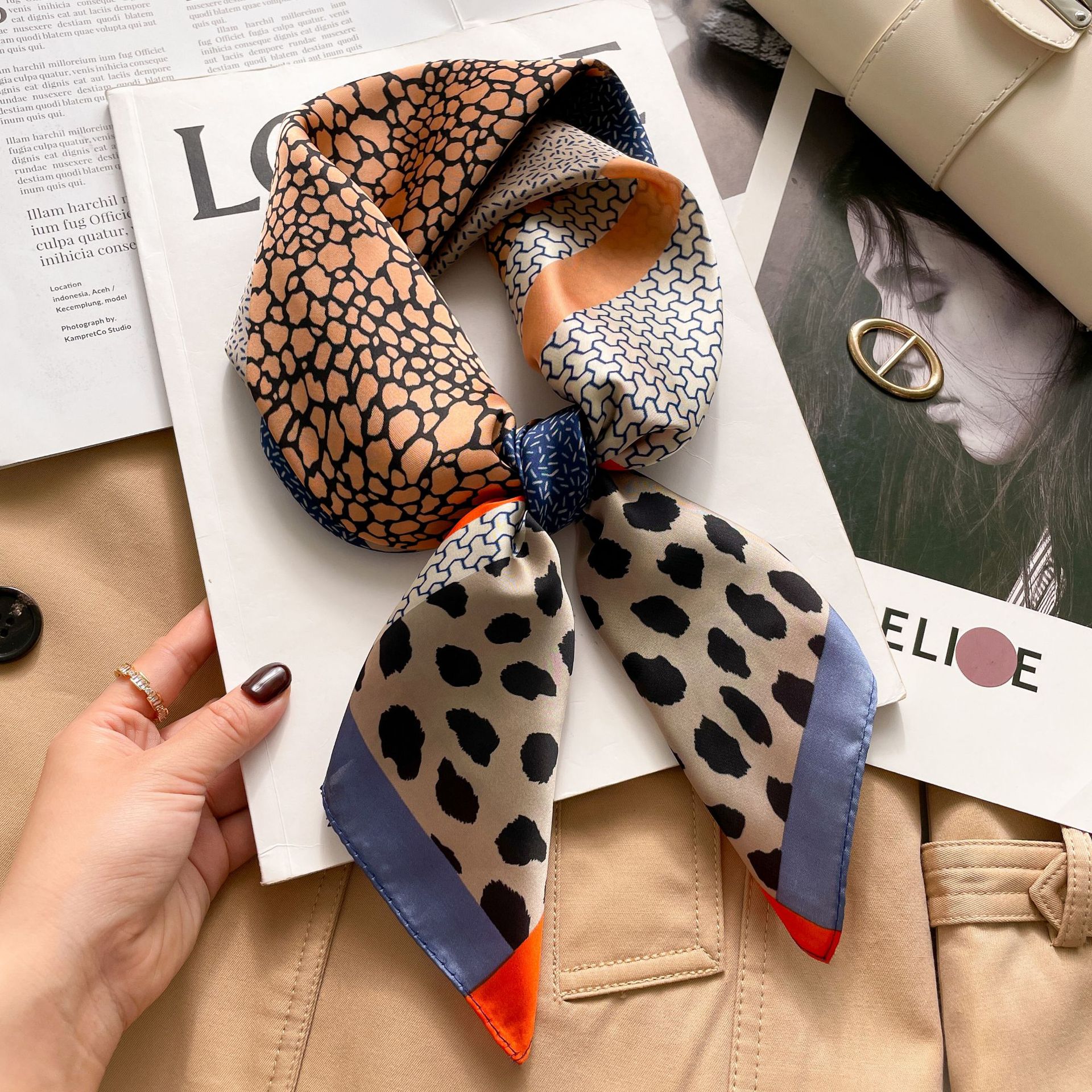 70 실크 스카프 가을과 겨울 새로운 프랑스 스타일 빈티지 인쇄 실크 작은 광장 스카프 여성 장식 올 매치 헤어 밴드 전문 스카프