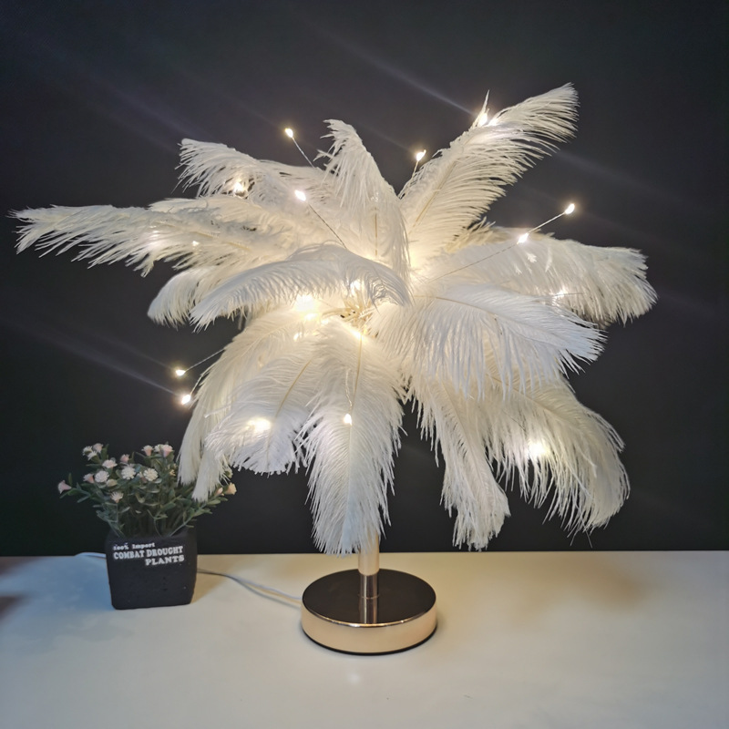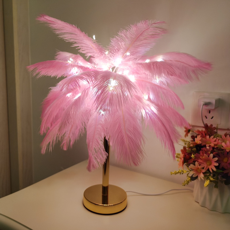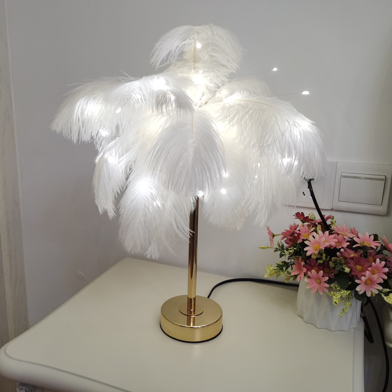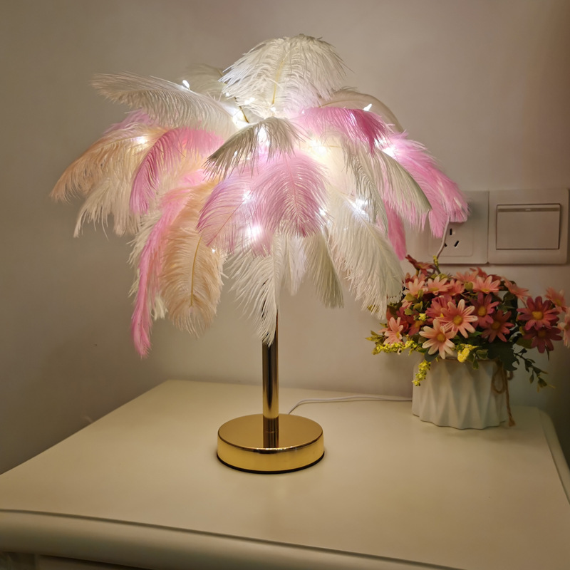 레이디 타조 깃털 램프 공주 침실 내부 사이버 연예인 침대 옆 테이블 램프 화이트 핑크 북유럽 창조적 인 Changming Xiaoye