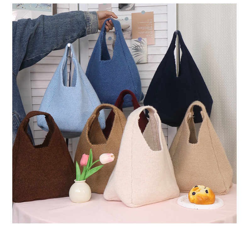 새로운 패션 봄 틈새 소프트 모직 핸드 토트 백 통근 맞춤형 서양식 단색 동남아 가방스토어 가기