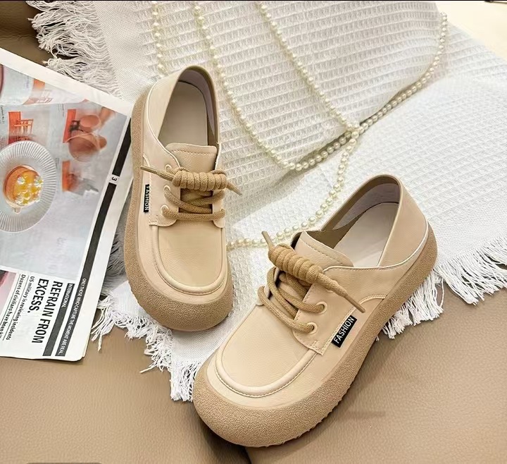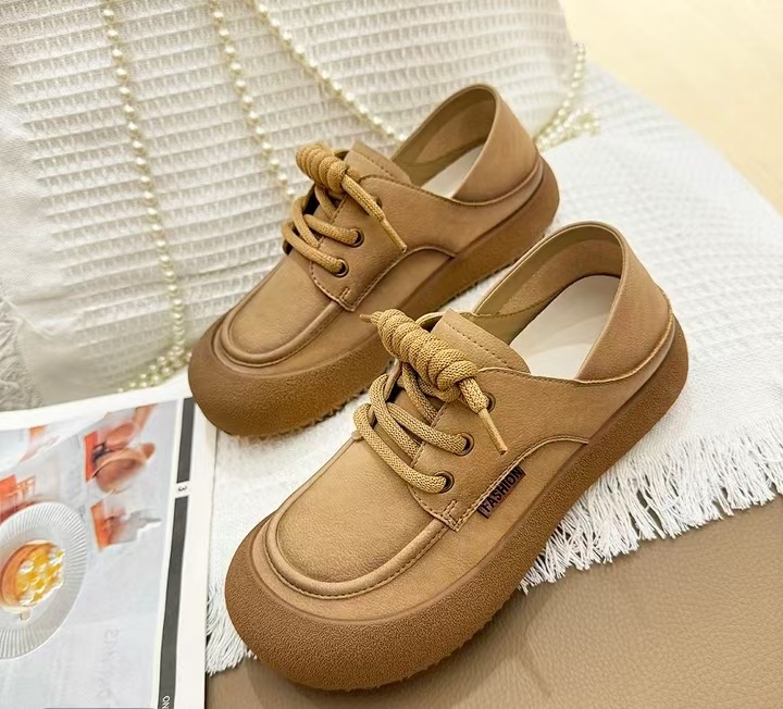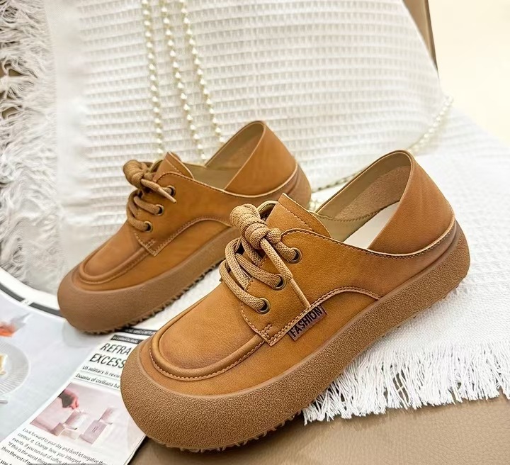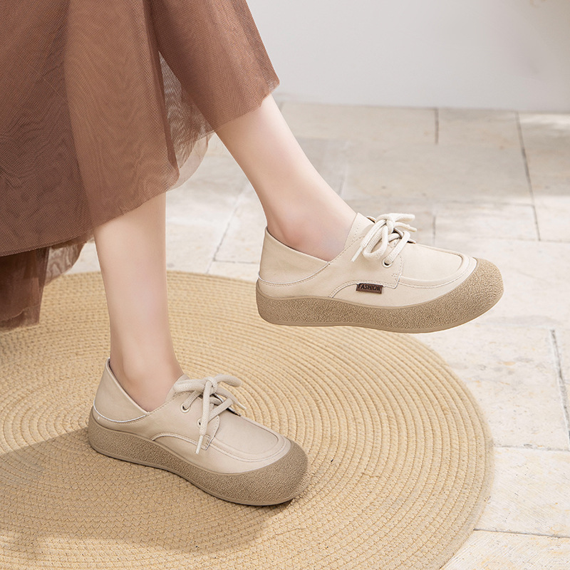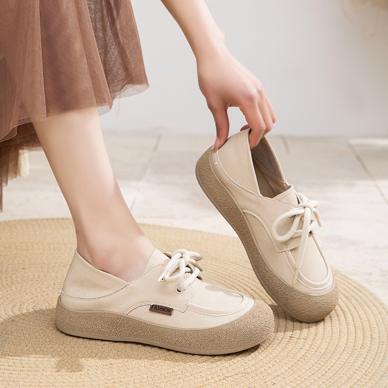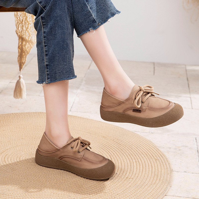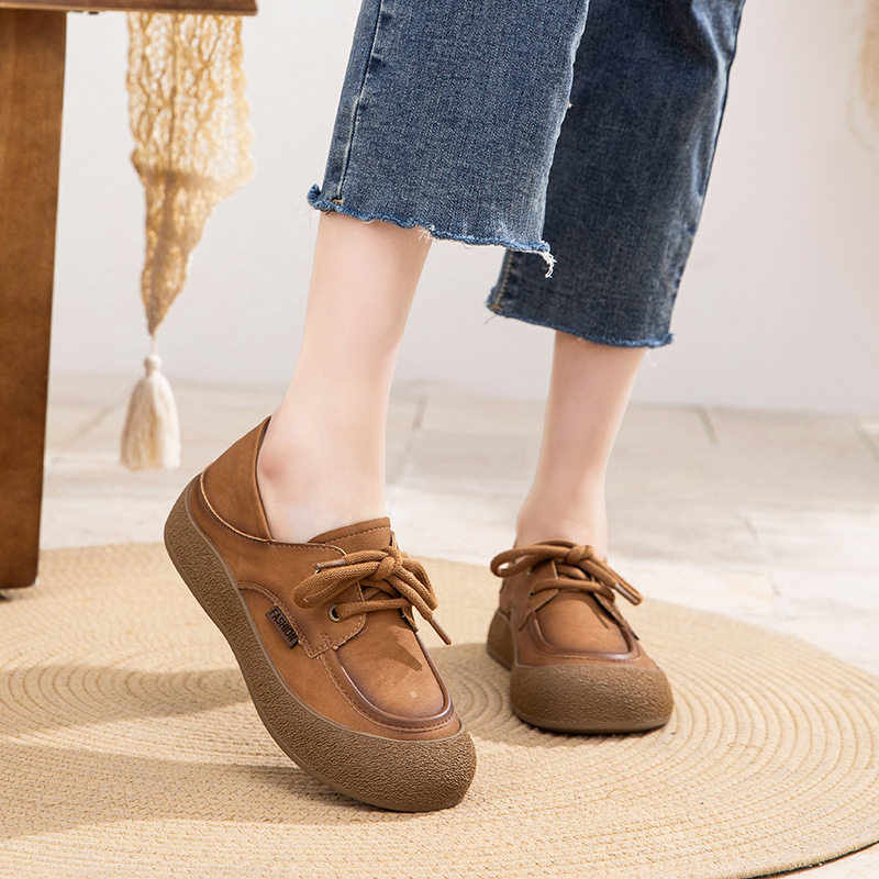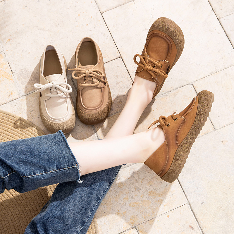 가죽 여성 신발 2025 새로운 빈티지 수제 Cowhide Loafers 경량 올매치 플랫폼 라운드 토 싱글 레이어 신발스토어 가기