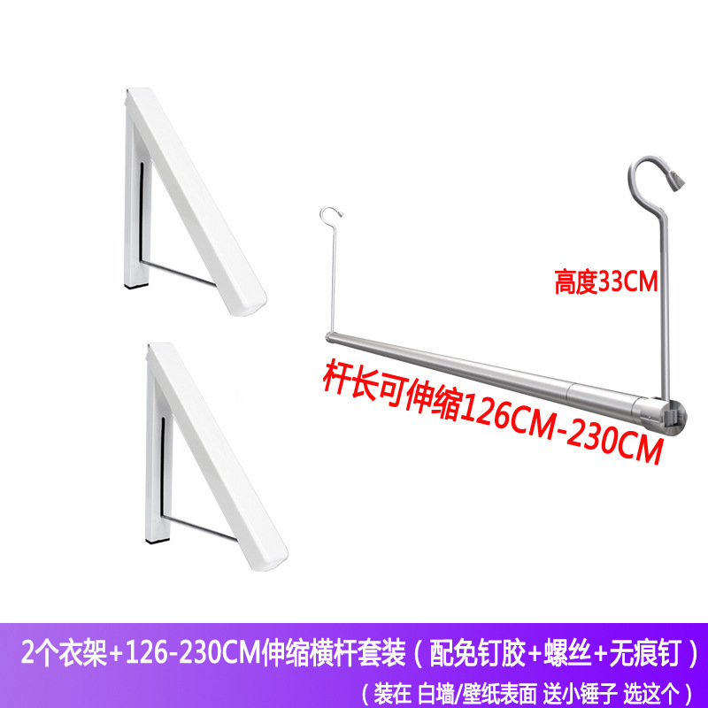 • 옷걸이 2개 + 126-230CM 텔레스코픽 크로스바 세트(나사 + 강력 접착제 + 흔적 없는 못, 흰색 벽/벽지)♜