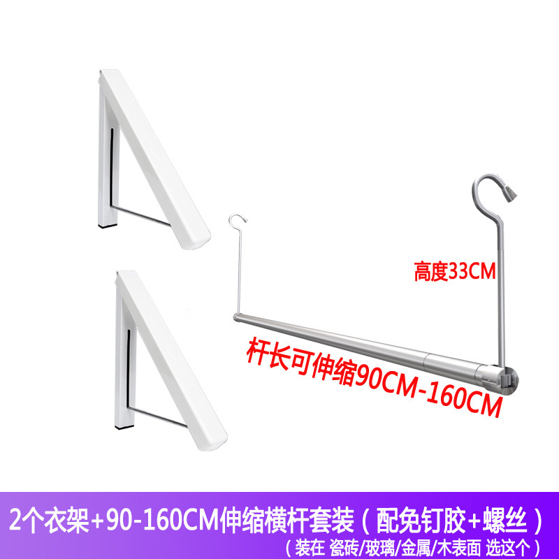 • 옷걸이 2개 + 90-160CM 텔레스코픽 크로스바 세트(나사 + 못이 없는 접착제) ♜