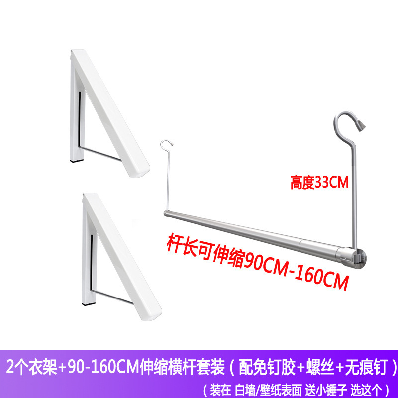 • 옷걸이 2개 + 90-160CM 텔레스코픽 크로스바 세트(나사 + 강력 접착제 + 흔적 없는 못, 흰색 벽/벽지)♜