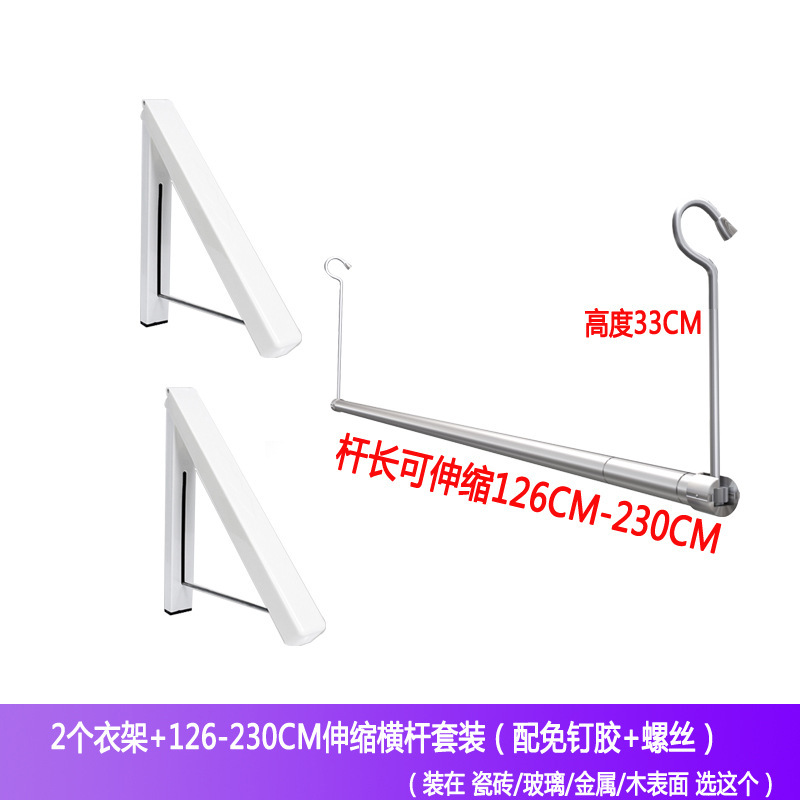 • 옷걸이 2개 + 126-230CM 텔레스코픽 크로스바 세트(나사 + 못이 없는 접착제)♜