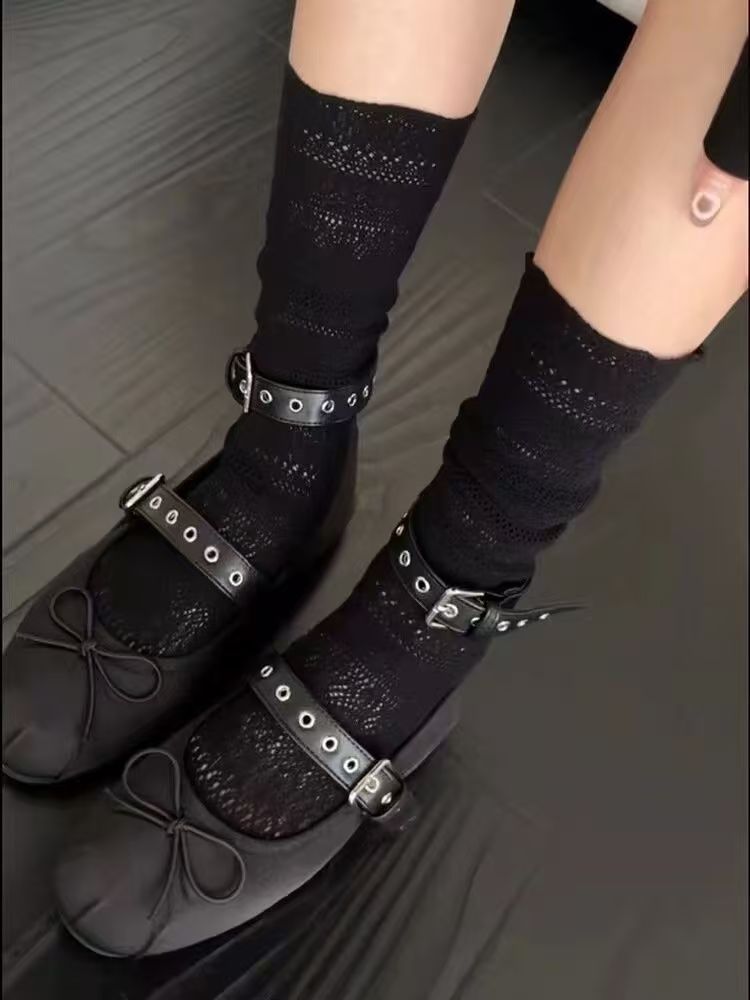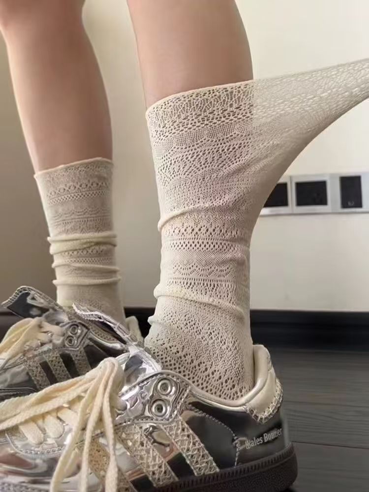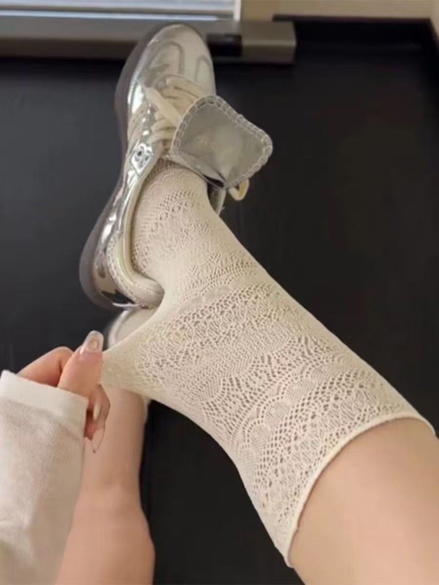 올 매치 빈티지 중공 양말 여성용 트렌디 양말 다리 얇은 봄과 여름 얇은 더미 양말 JK 메쉬 미드 튜브 양말