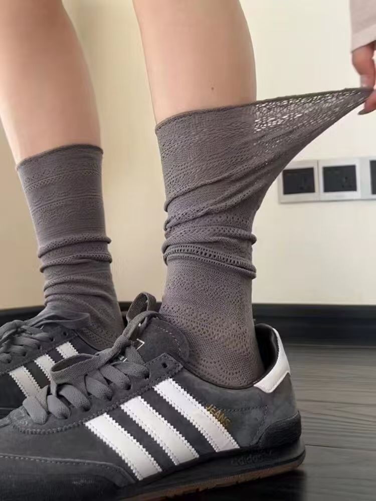 올 매치 빈티지 중공 양말 여성용 트렌디 양말 다리 얇은 봄과 여름 얇은 더미 양말 JK 메쉬 미드 튜브 양말스토어 가기