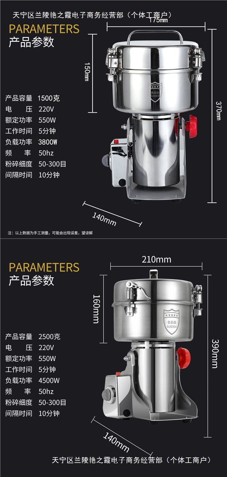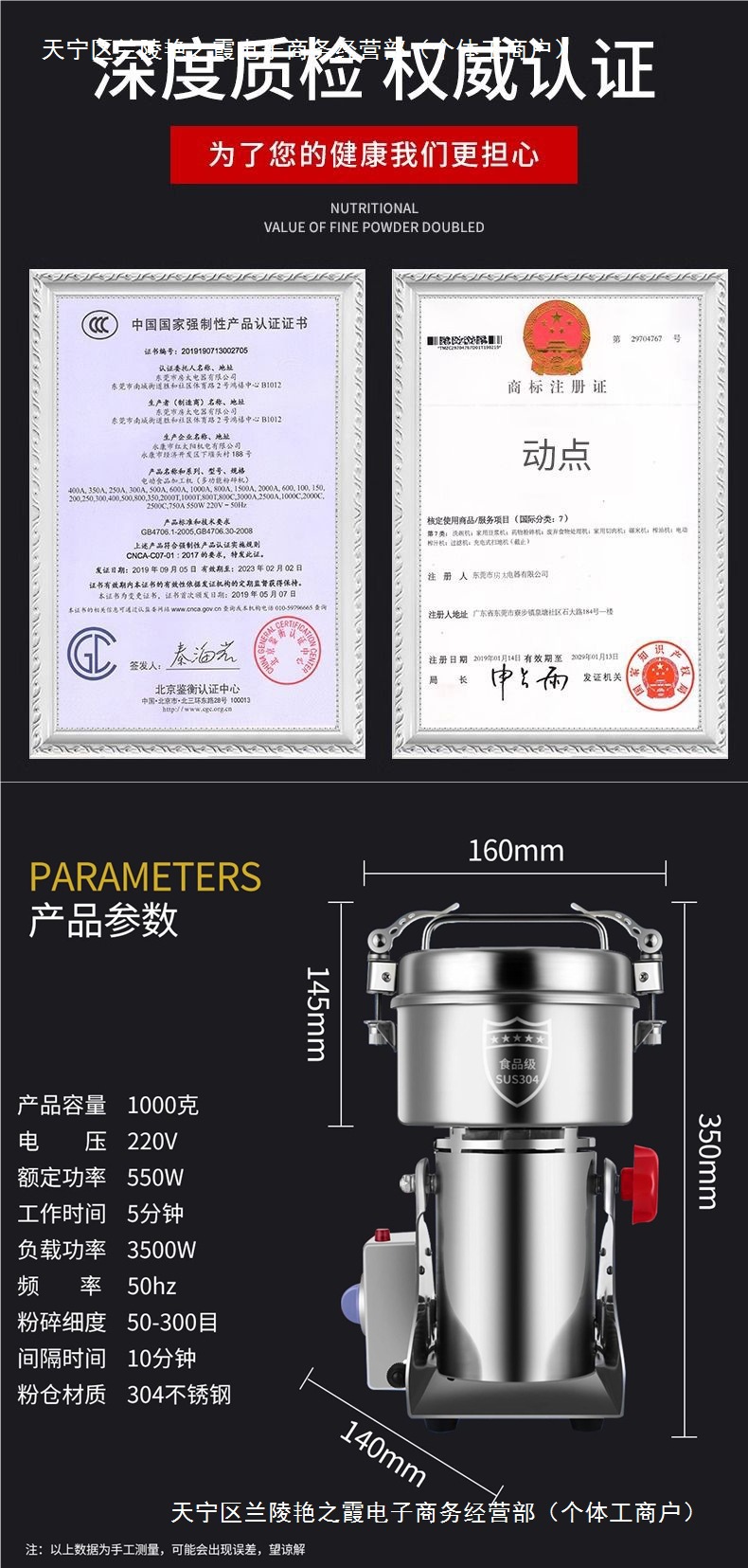 이동 지점 고출력 다기능 분쇄기 304 스테인레스 스틸 가정용 분쇄기 notoginseng 후추 분쇄기스토어 가기