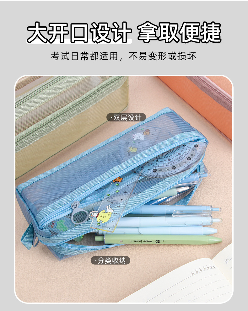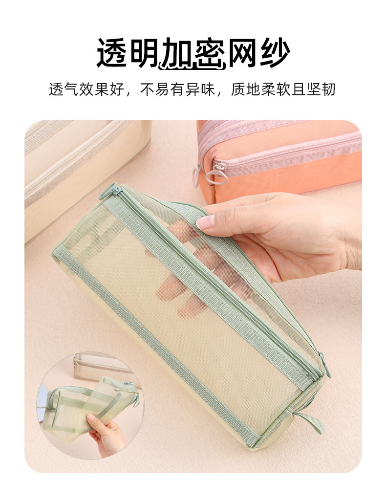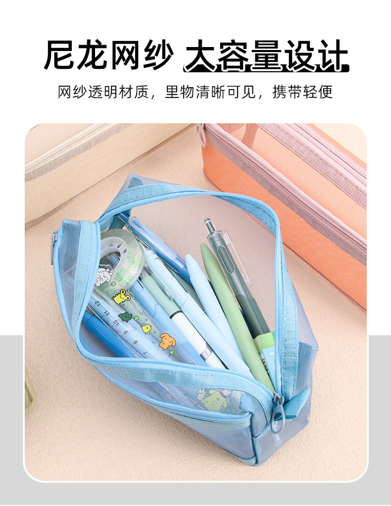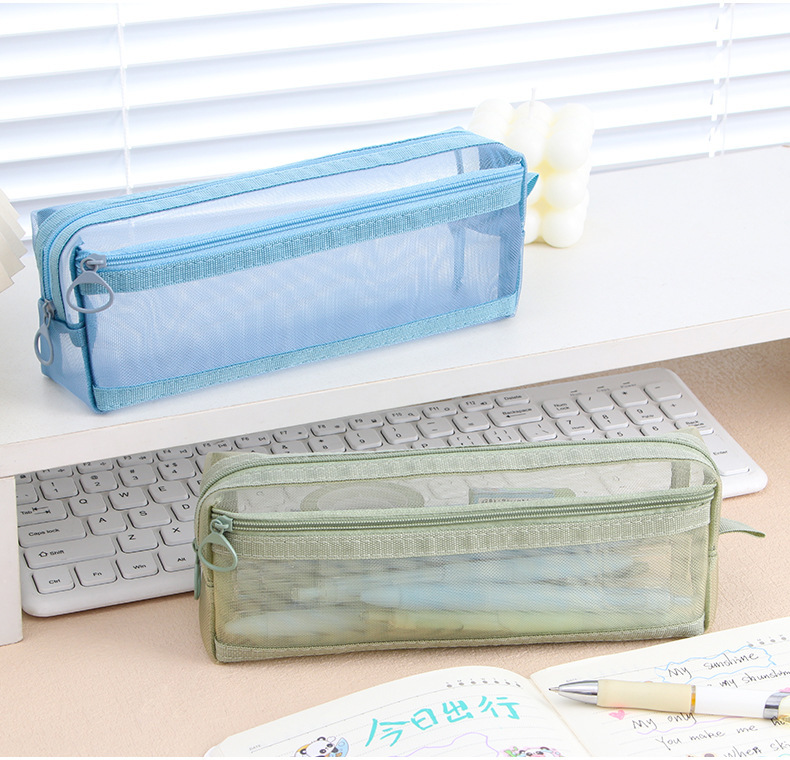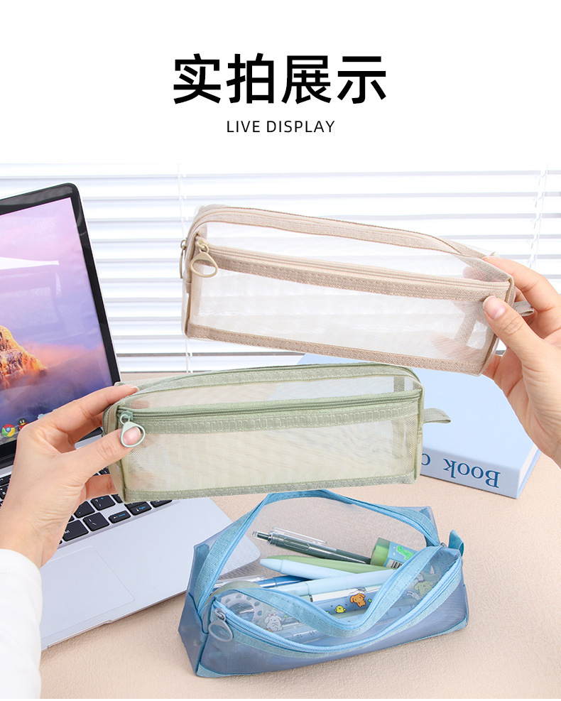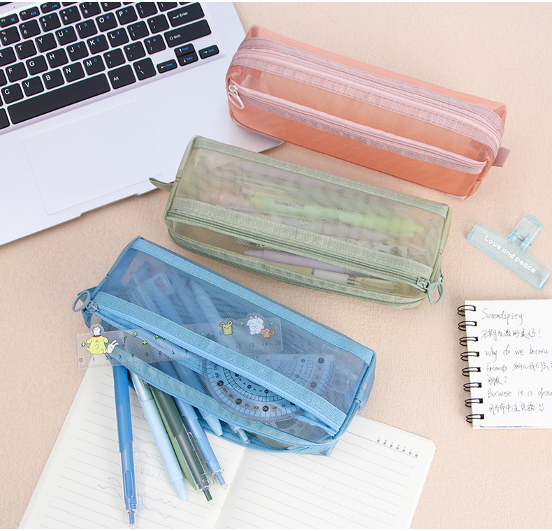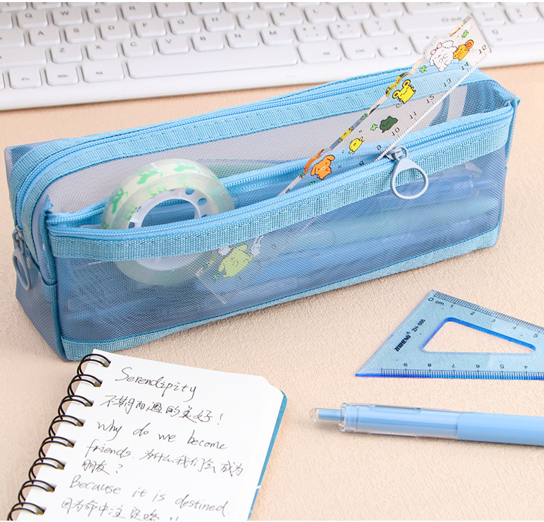 창조적 인 메쉬 투명 펜 가방 직사각형 학생 시험 지퍼 대용량 연필 가방 문구 상자 도매스토어 가기