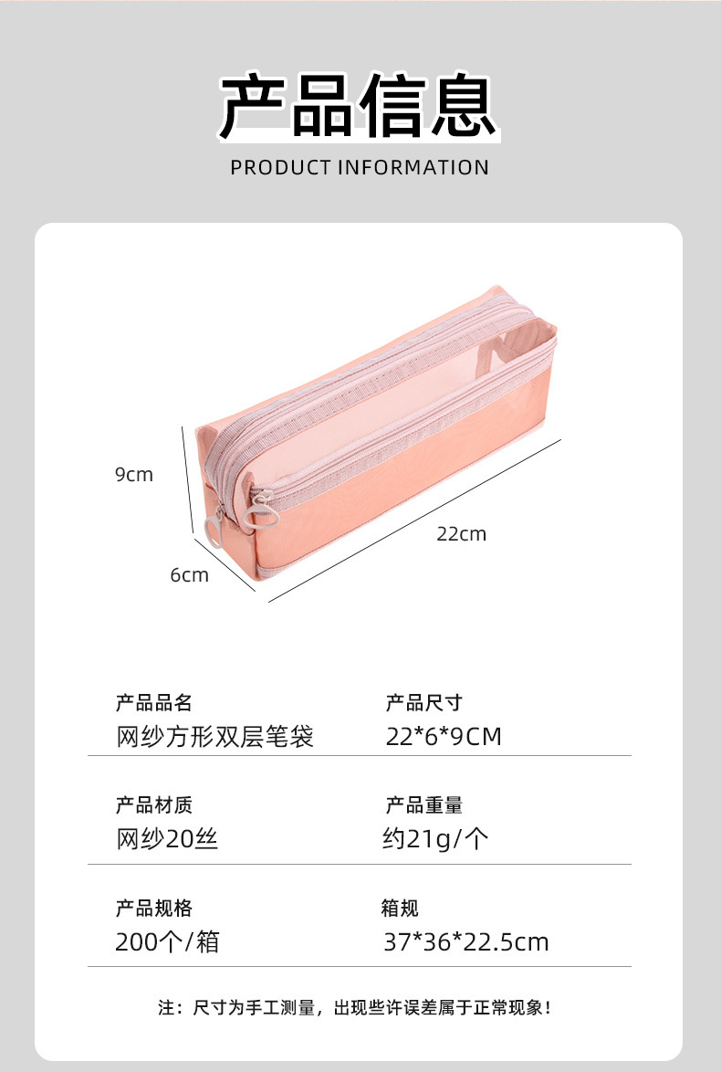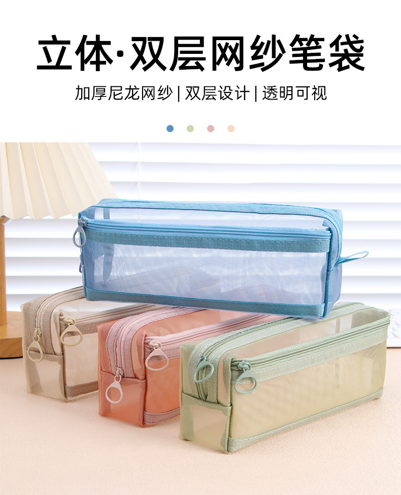 창조적 인 메쉬 투명 펜 가방 직사각형 학생 시험 지퍼 대용량 연필 가방 문구 상자 도매
