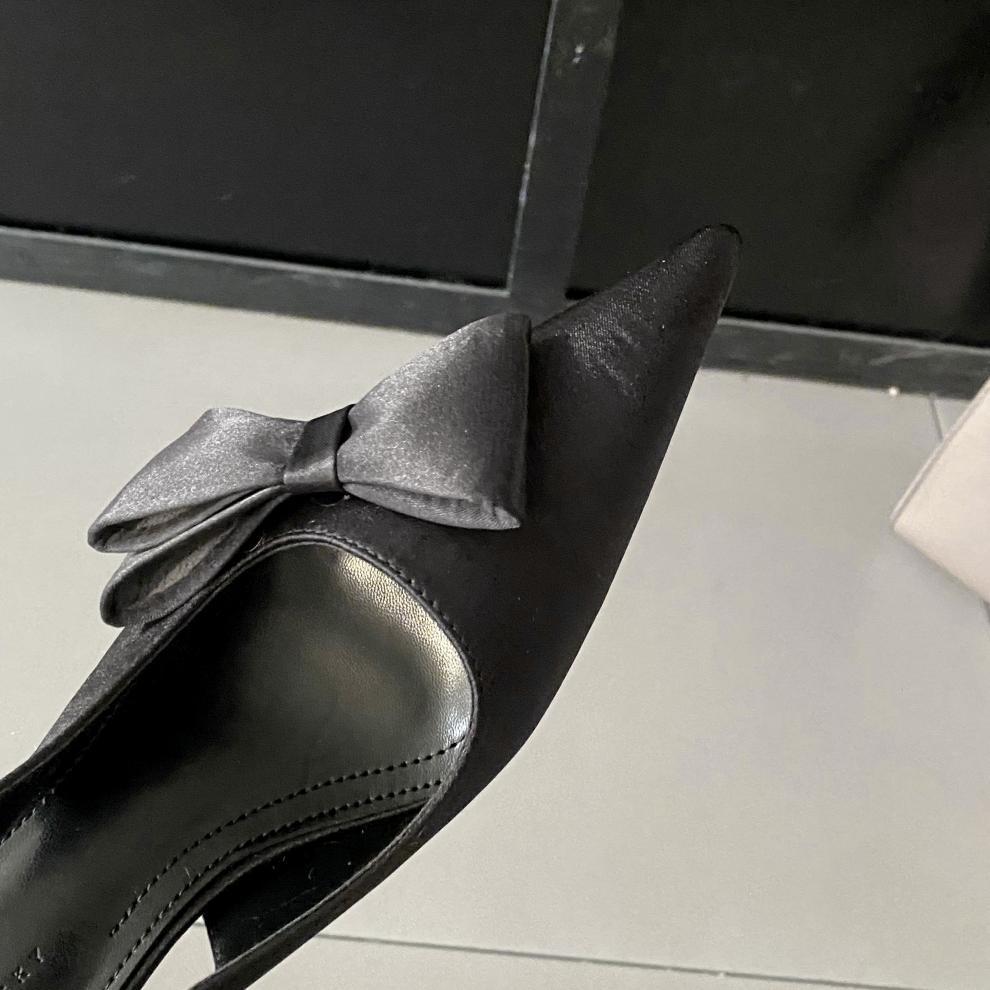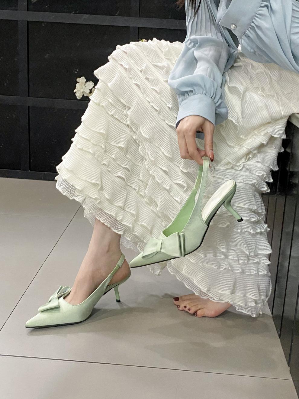 봄 2025 새로운 뾰족한 짧은 굽 우아한 슬림 프랑스 유행 성 미용 여성 신발스토어 가기