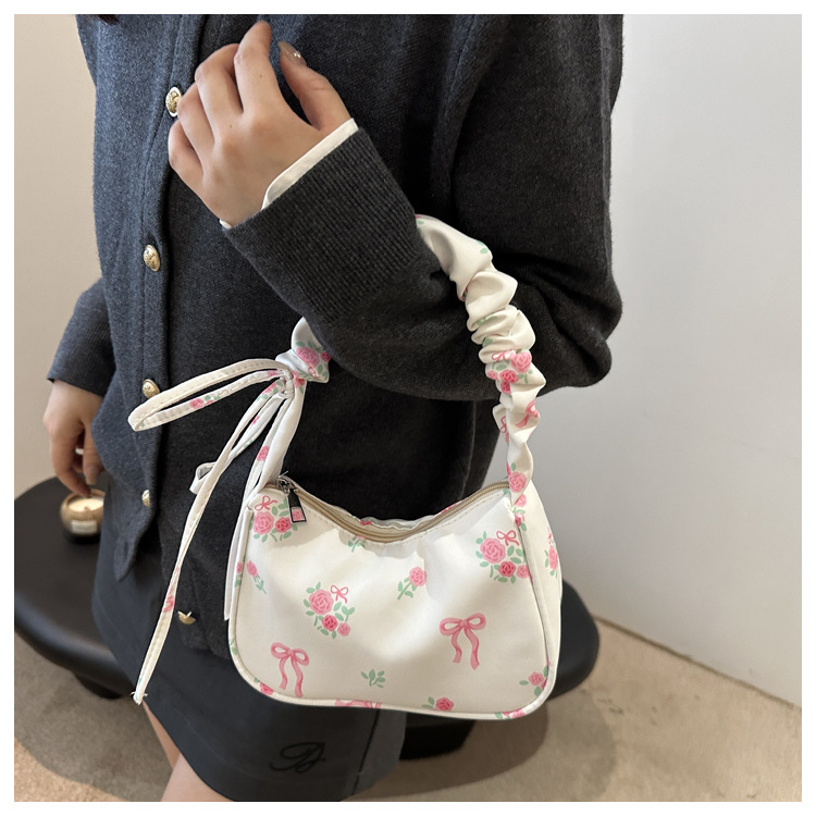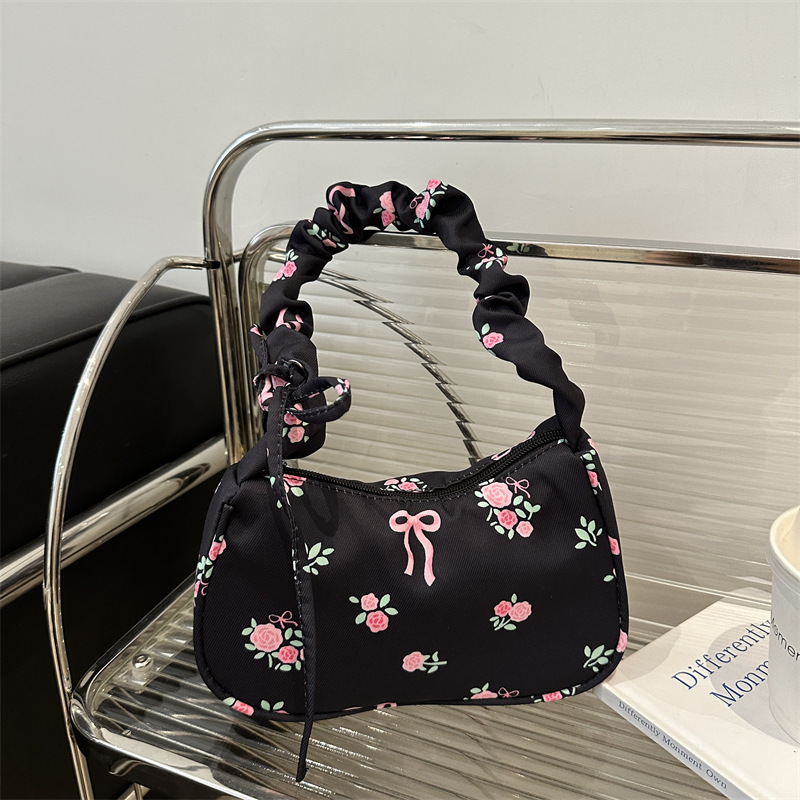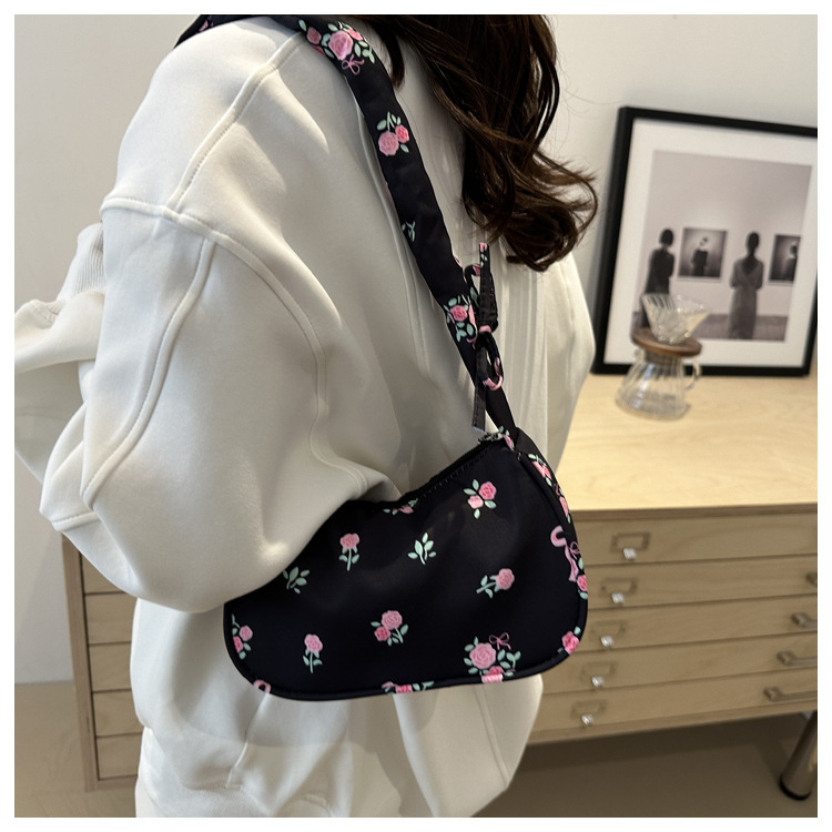신선한 스타일 Ins 예술적 꽃 어깨 가방 대용량 핸드백 학생들을위한 간단한 인쇄 된 우아한 겨드랑이 가방