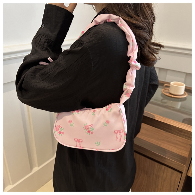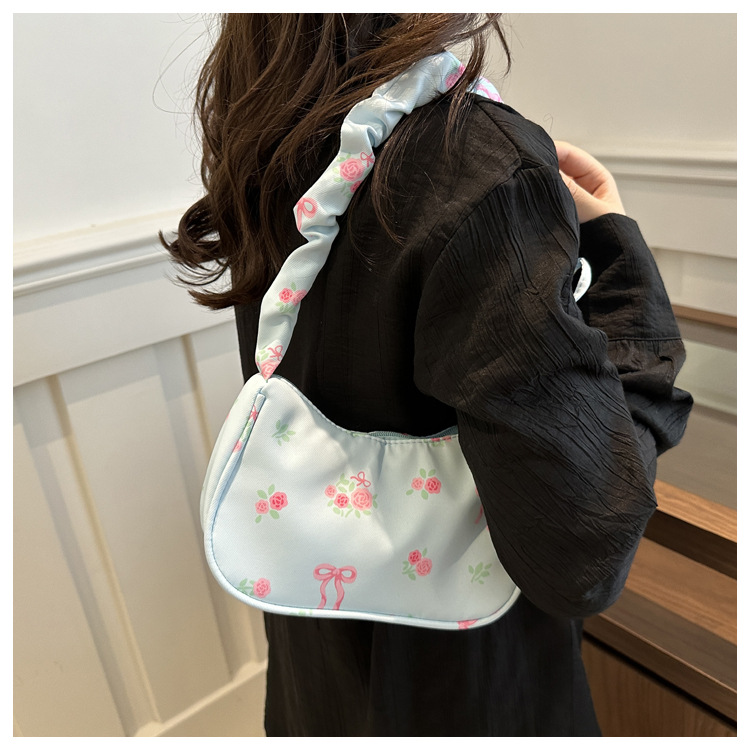 신선한 스타일 Ins 예술적 꽃 어깨 가방 대용량 핸드백 학생들을위한 간단한 인쇄 된 우아한 겨드랑이 가방스토어 가기