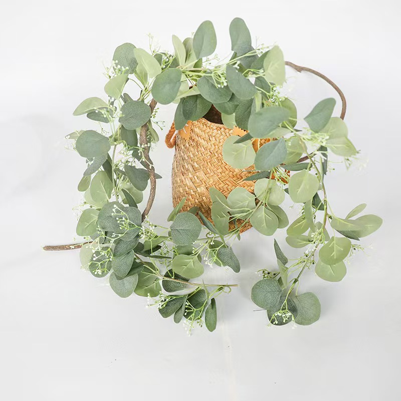 아마존 유칼립투스 잎 Gypsophila 등나무 인공 유칼립투스 가짜 녹색 식물 웨딩 파티 덩굴 원피스