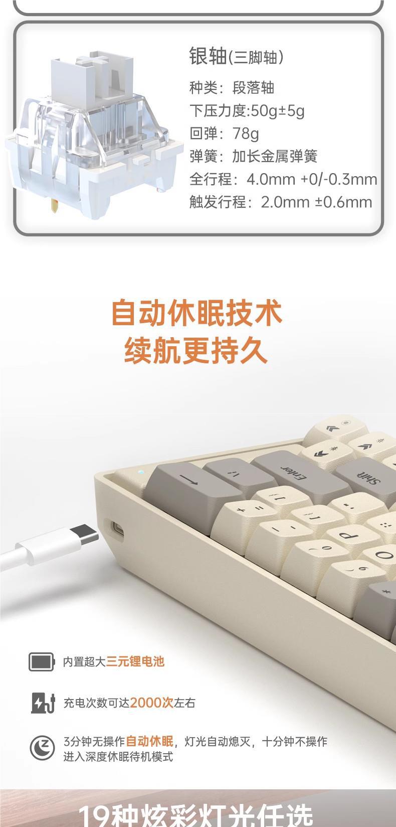 • 65키 3모드 Qingying Baiyun 테마 Qingying 슬리브 핫 스왑 가능 + 19가지 조명 효과 Qingying 공식 표준 Qingying