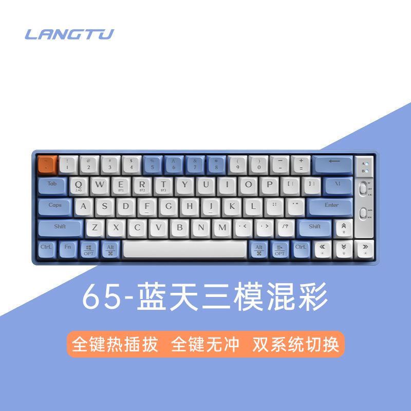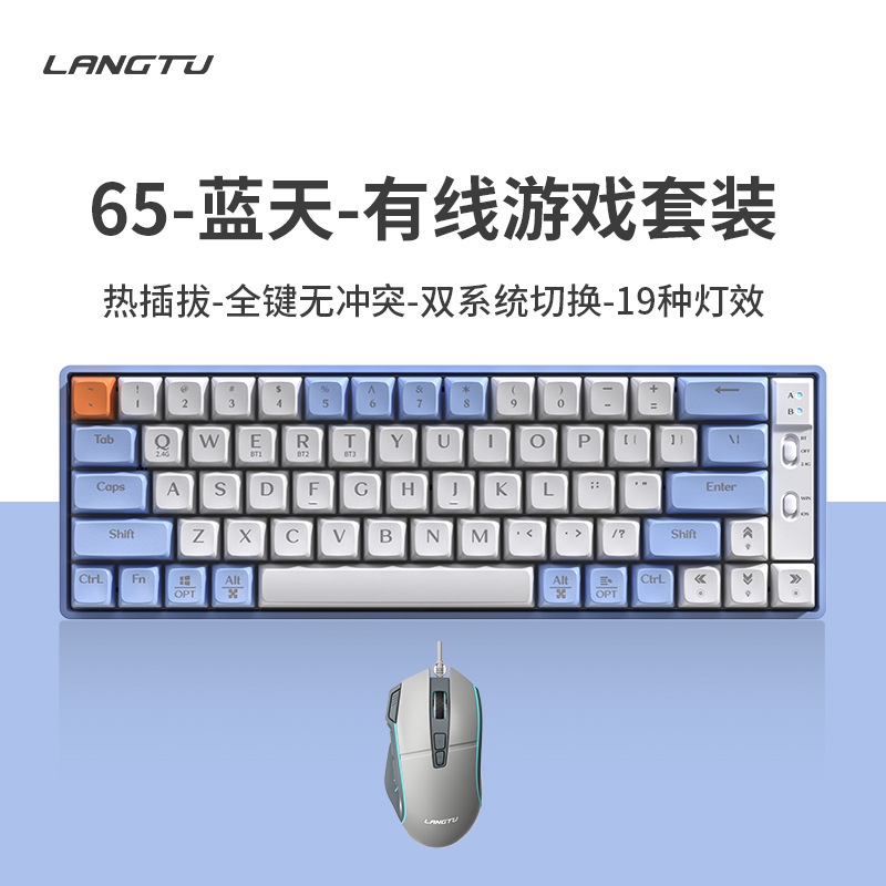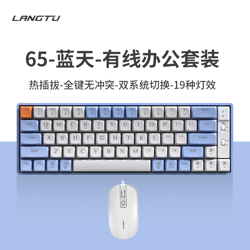 • GK65 3모드 블루 스카이 + 유선 사무용 마우스 Qingying 공식 표준 Qingying은 Qingying 골드 스위치입니다.