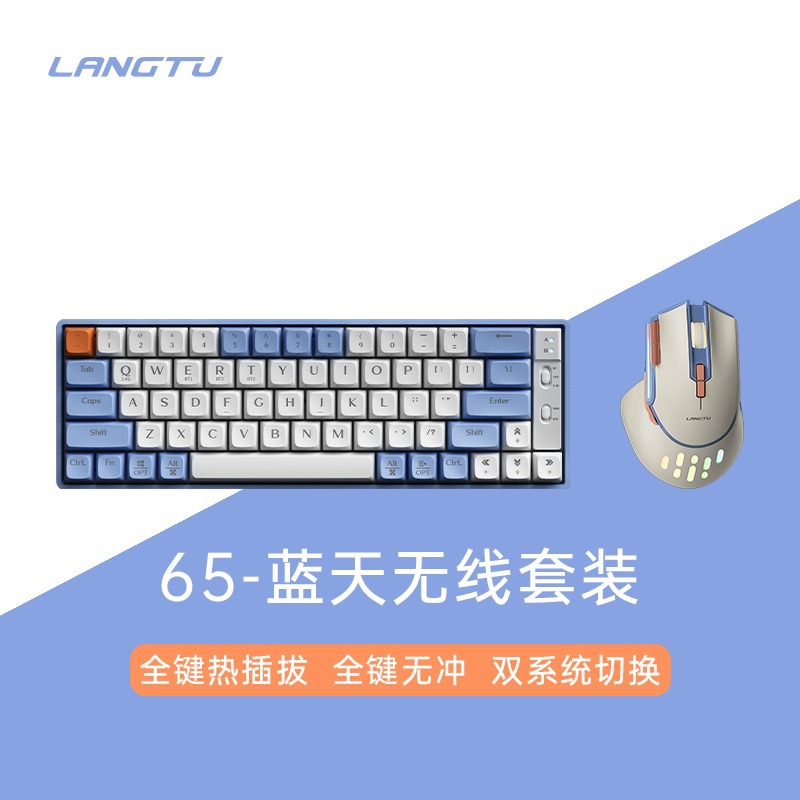 • GK65 3모드 블루 스카이 + 유선 사무용 마우스 Qingying 공식 표준 Qingying은 Qingying 실버 스위치입니다