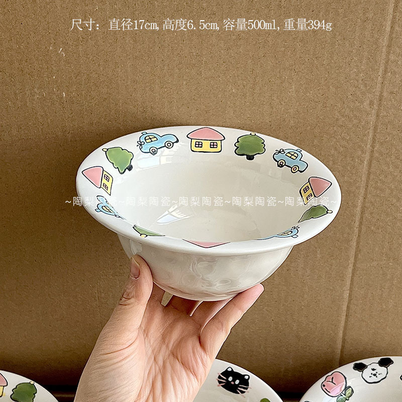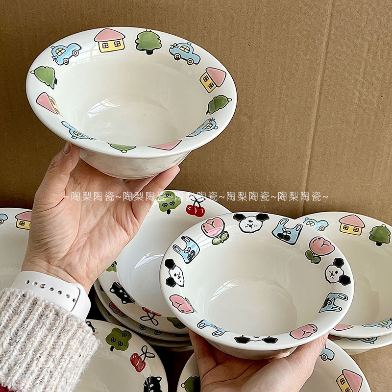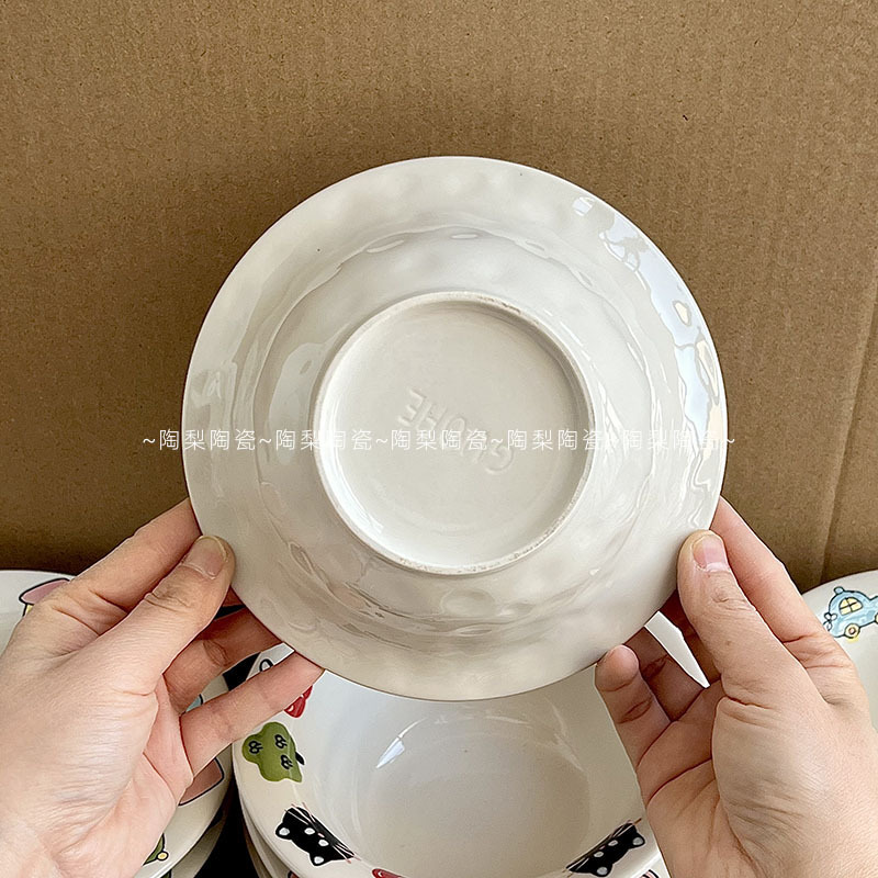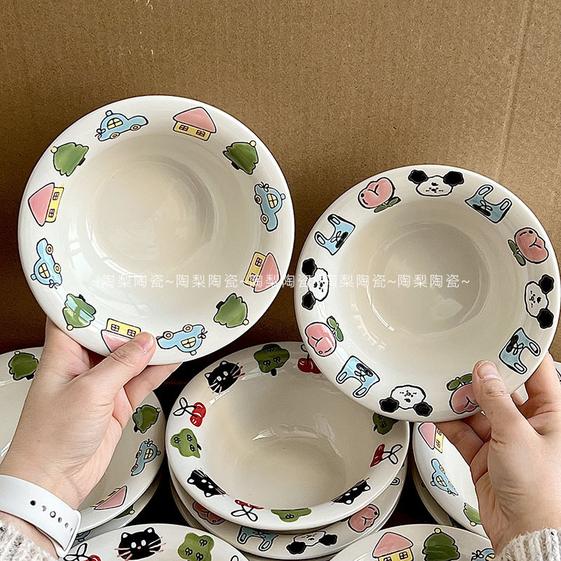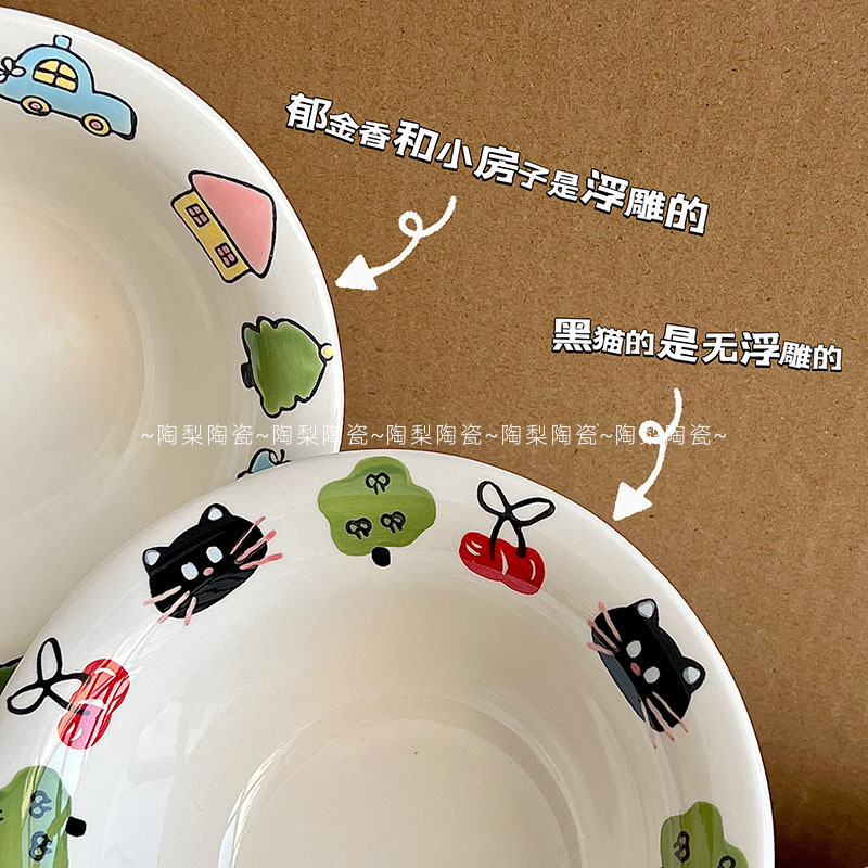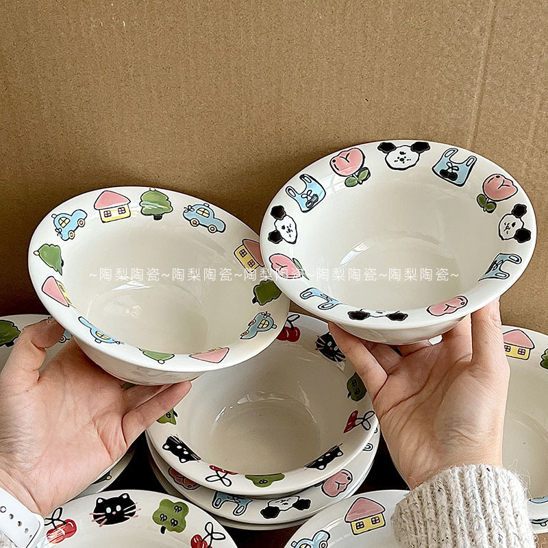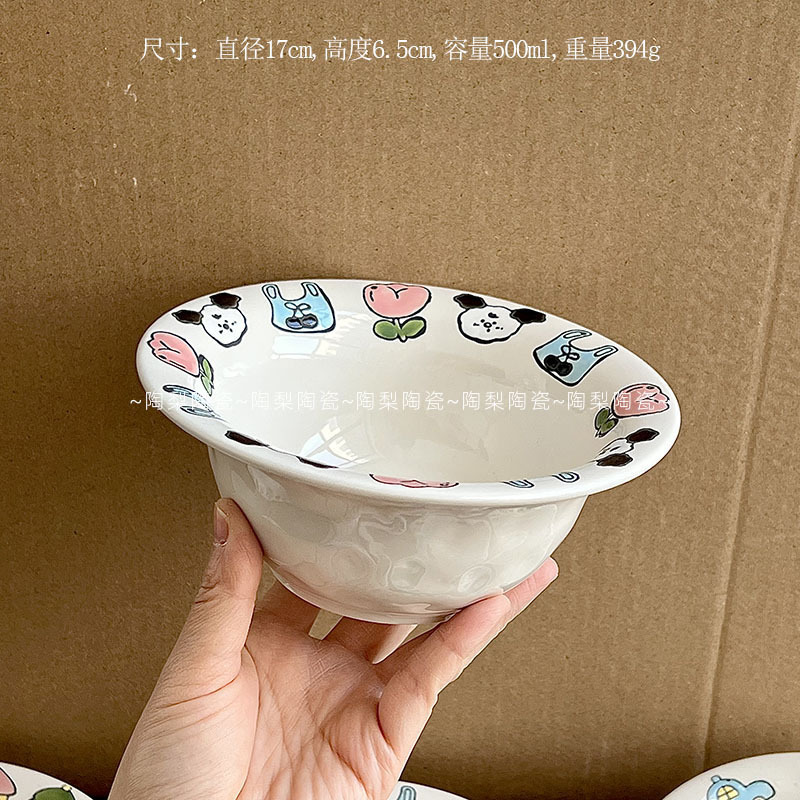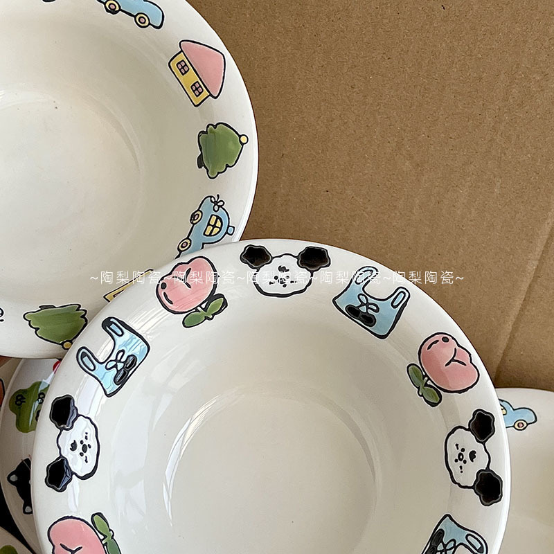 창조적 인 귀여운 어린애 같은 세라믹 그릇 양각 손으로 그린 턴 업 밀짚 모자 샐러드 그릇 Pagat 딥 플레이트 가정용 접시 밥 그릇스토어 가기