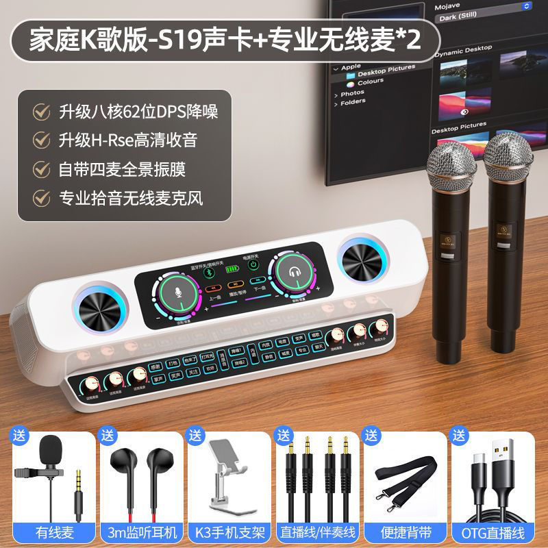 • 버전 [무선 마이크 + 섀도우 머슬 램프] 사운드 카드와 오디오가 통합되어 있습니다.