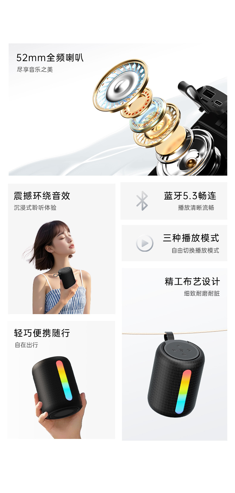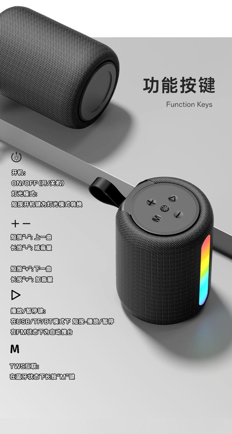 록 블루투스 스피커 s56 직물 빛나는 야외 자동차 오디오 홈 분위기 빛 데스크탑 미니 오디오