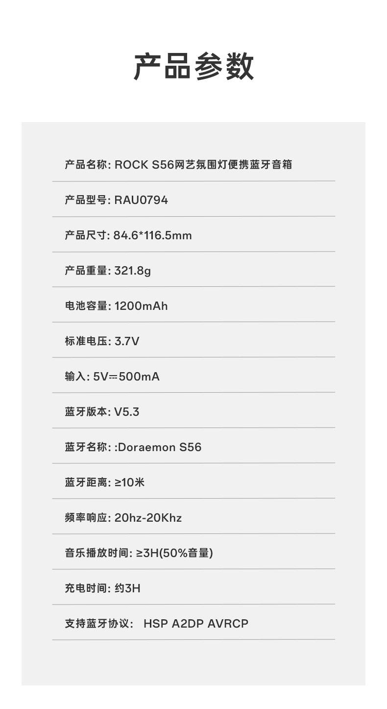 록 블루투스 스피커 s56 직물 빛나는 야외 자동차 오디오 홈 분위기 빛 데스크탑 미니 오디오스토어 가기