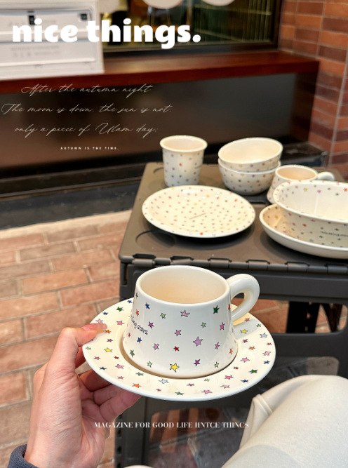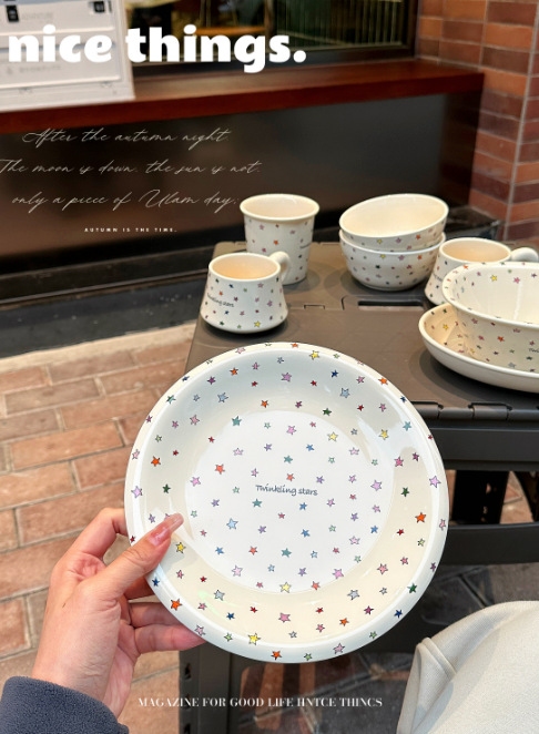 심플하고 예쁜 별 시리즈 가정용 밥그릇 샐러드 그릇 손잡이 컵 커피잔 접시 세트