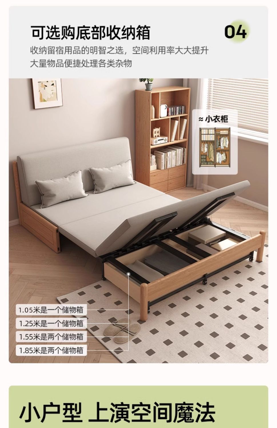 솔리드 우드 소파 침대 다기능 소파 접이식 레드 오크 중국 소파 싱글 더블 텔레스코픽 소파 침대스토어 가기