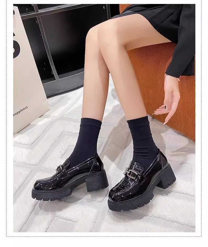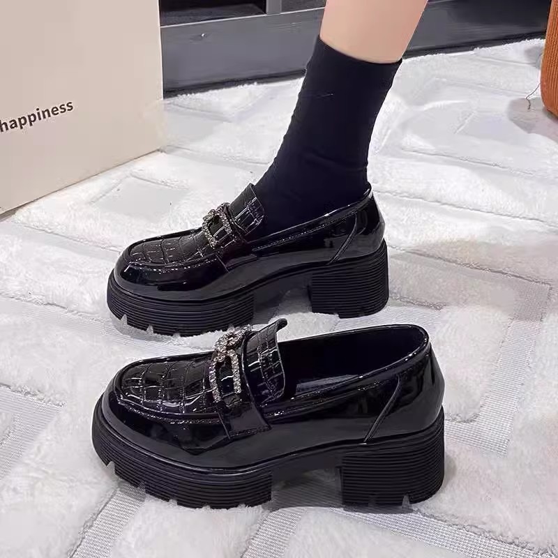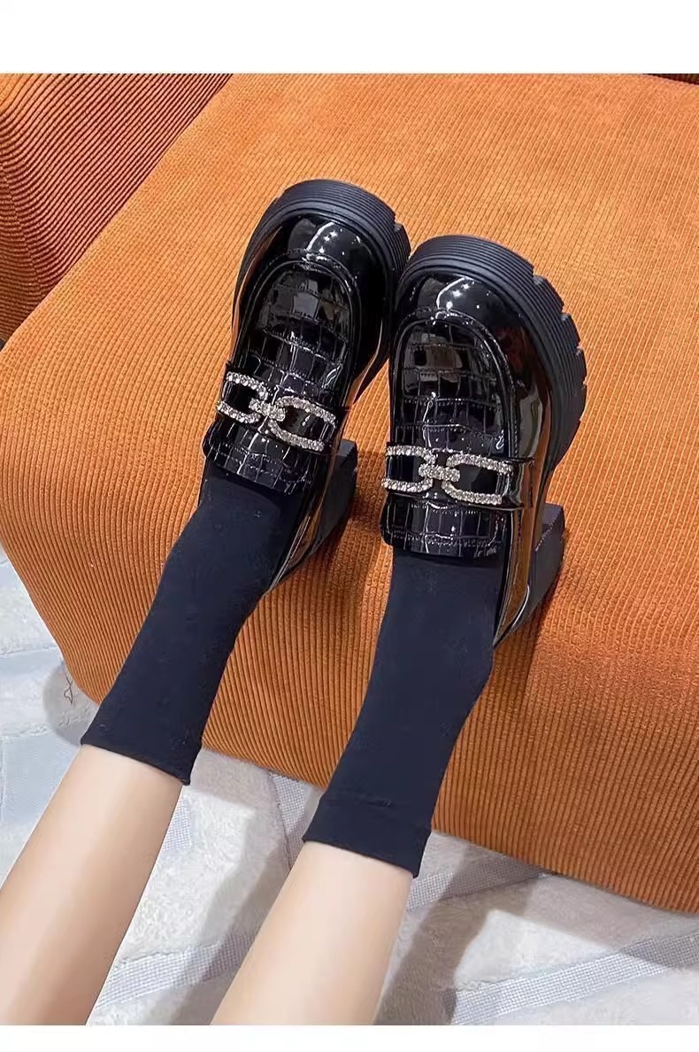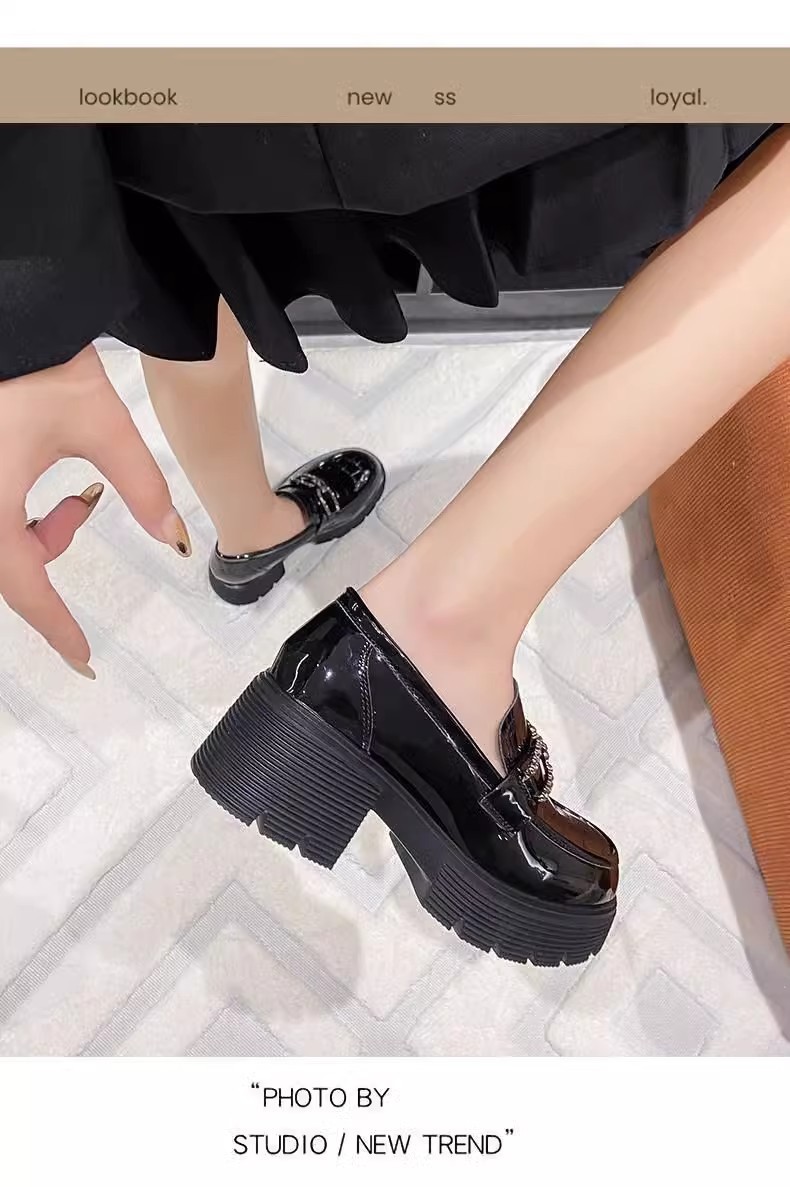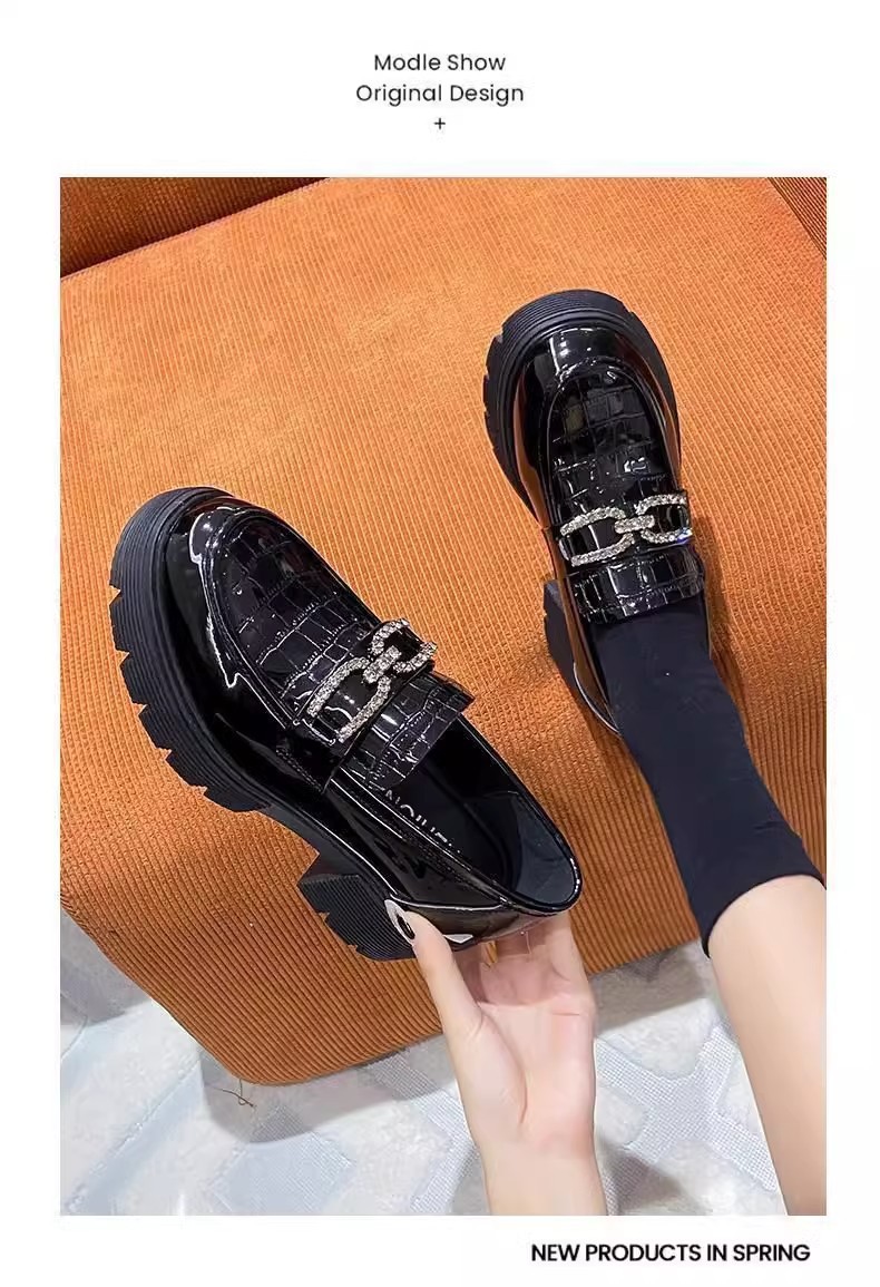 진짜 부드러운 가죽 바닥 로퍼 여성의 새로운 올 매치 아카데미 스타일 높이 증가 싱글 레이어 신발 여성의 두꺼운 밑창 샤넬 스타일 작은 가죽 신발