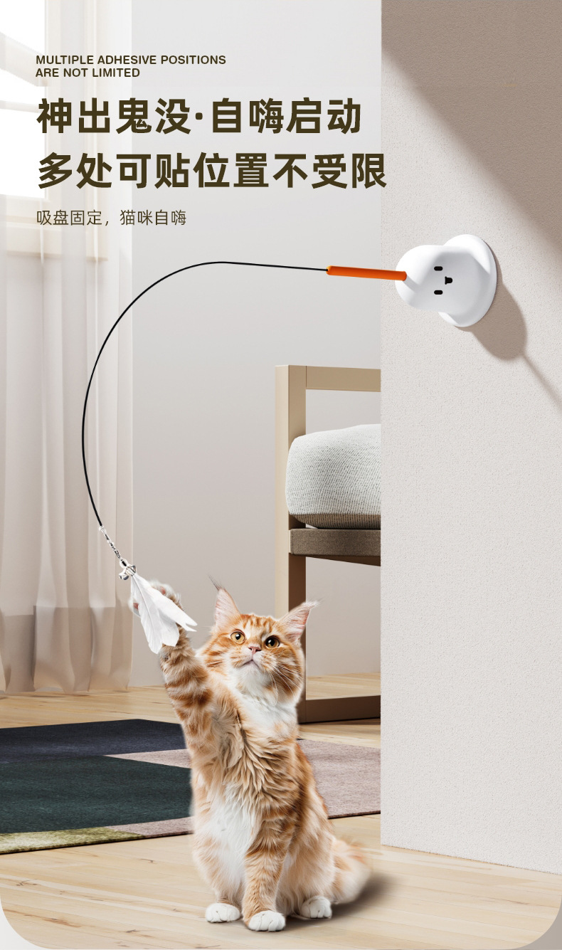 새로운 고양이 장난감 강력한 흡입 컵 고양이 테이 스틱 고양이 셀프-헤이-헤이-헤이-헤이-헤이-헤이 아티팩트 핸드 헬드 테이 고양이 깃털