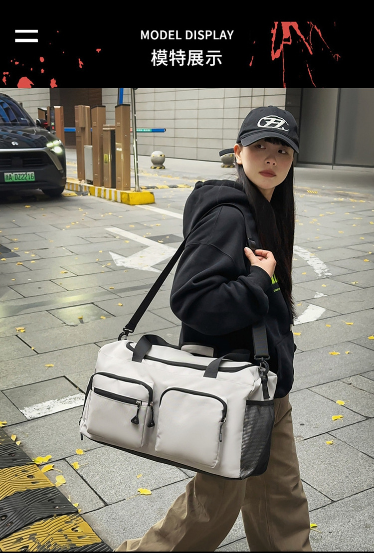 2025 새로운 멀티 포켓 여행 가방 트렌디 한 캐주얼 건조하고 젖은 별도의 스포츠 요가 가방 나일론 경량 더플 백