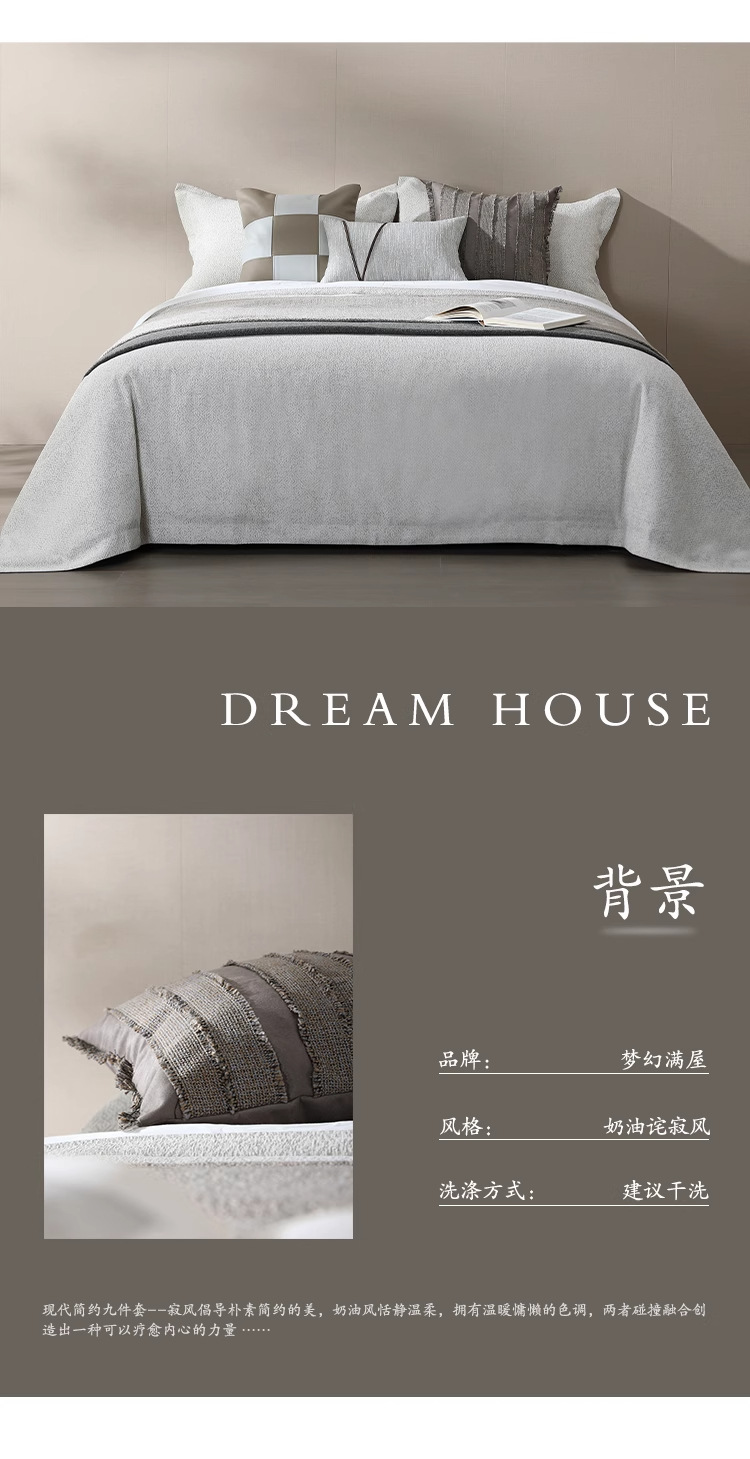 크림 조용한 스타일 간단한 9 피스 세트 빌라 가구 세트 모델 룸 소프트 핏 특별 침구 사용자 정의스토어 가기