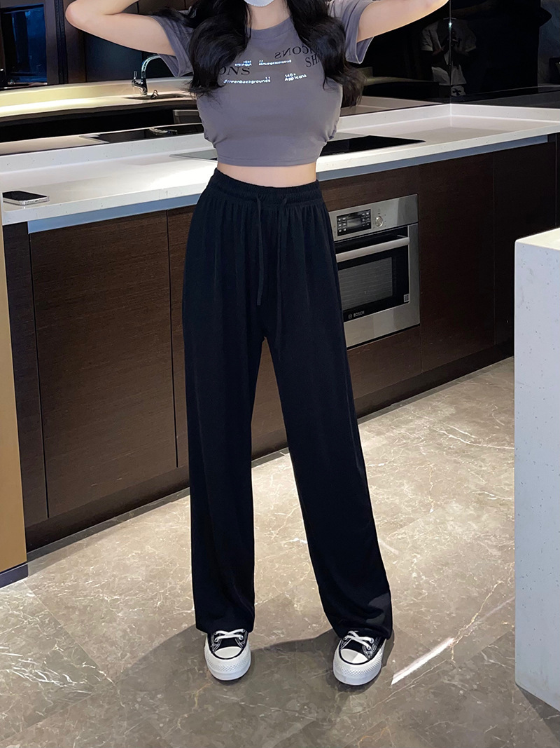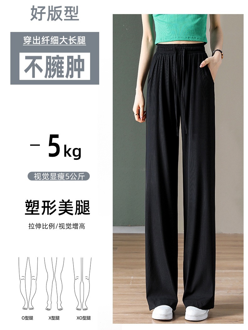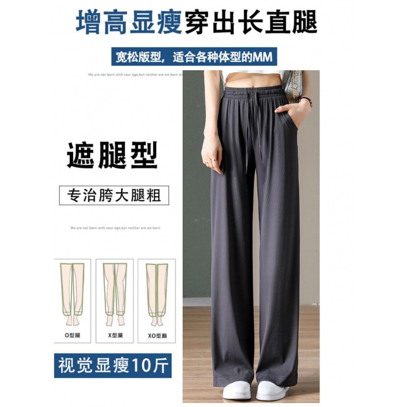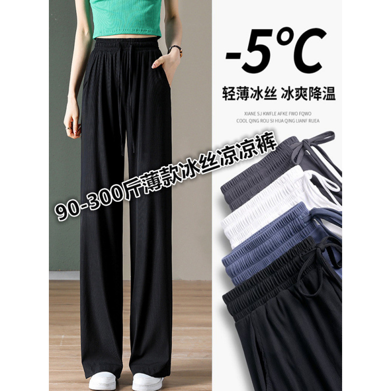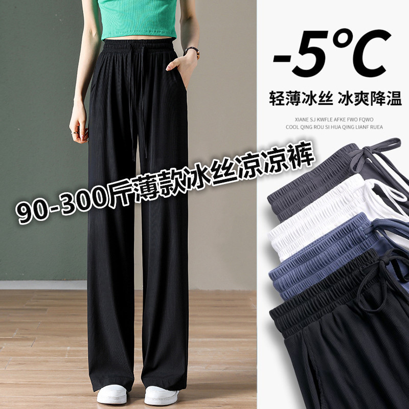 여름 얇은 아이스 실크 플러스 사이즈 여자 200kg 통통녀 느슨한 슬림 넓은 다리 캐주얼 스포츠 멋진 바지 300