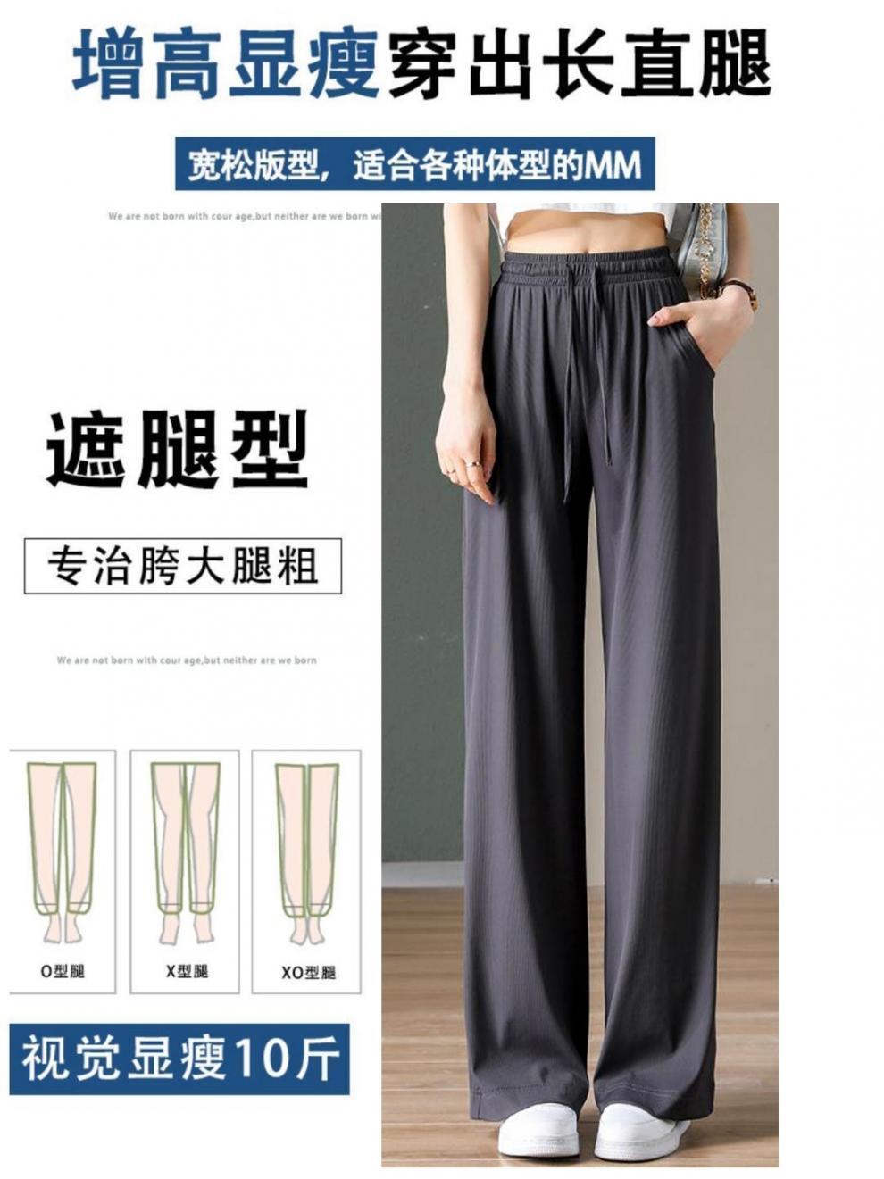 여름 얇은 아이스 실크 플러스 사이즈 여자 200kg 통통녀 느슨한 슬림 넓은 다리 캐주얼 스포츠 멋진 바지 300스토어 가기