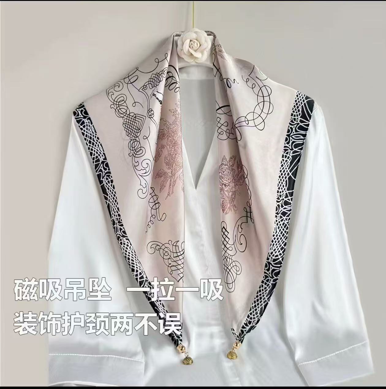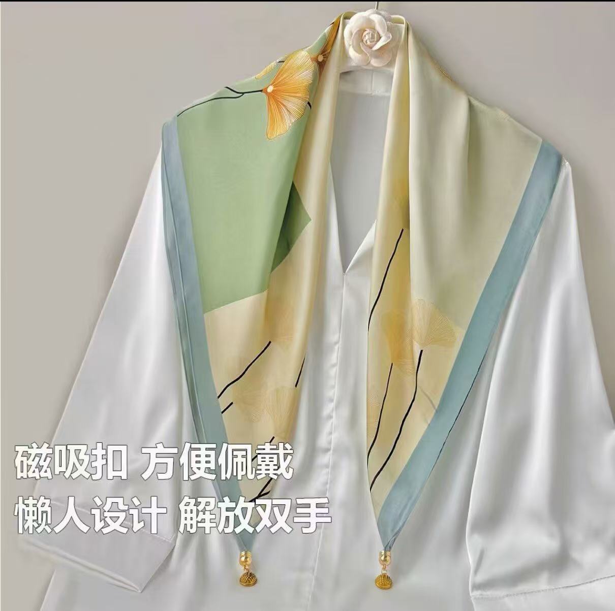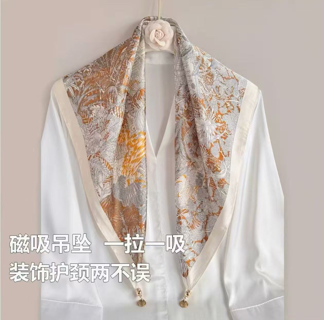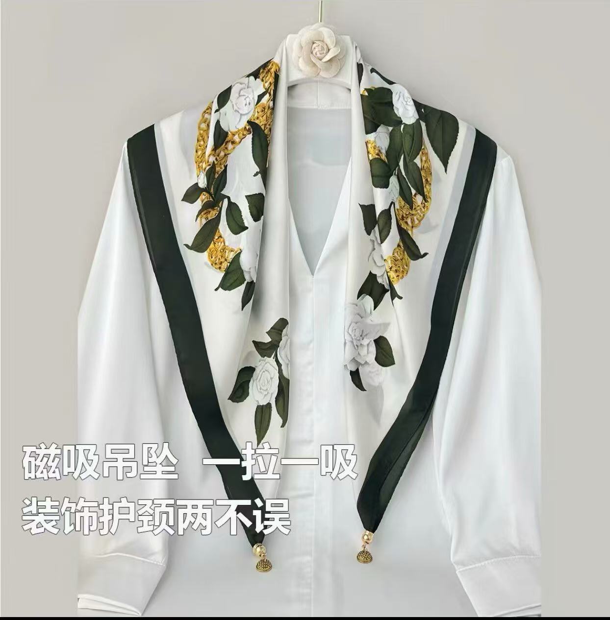 창조적 인 실크 마그네틱 버클 스카프 봄과 여름 새로운 선 스크린 꽃 인쇄 스카프 예술 여성 목 스카프