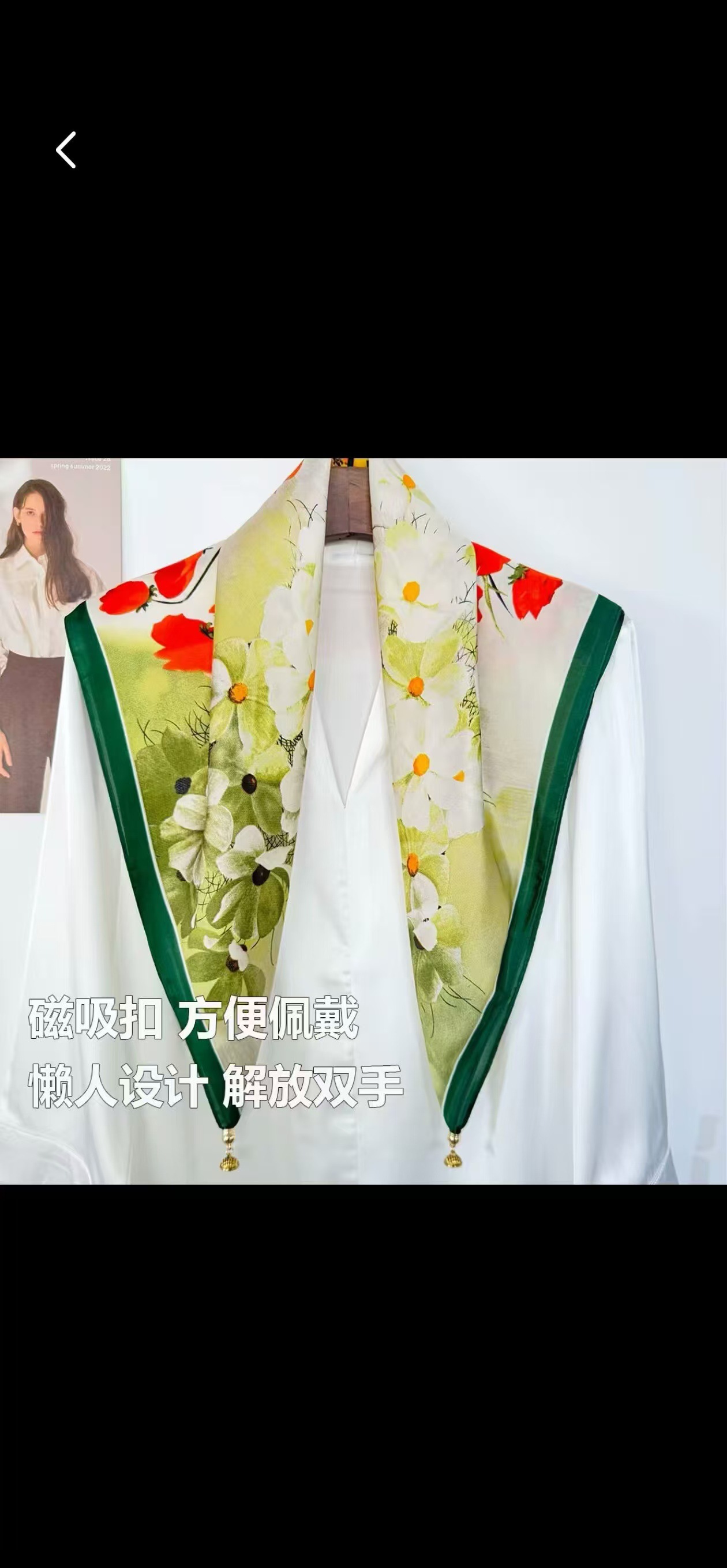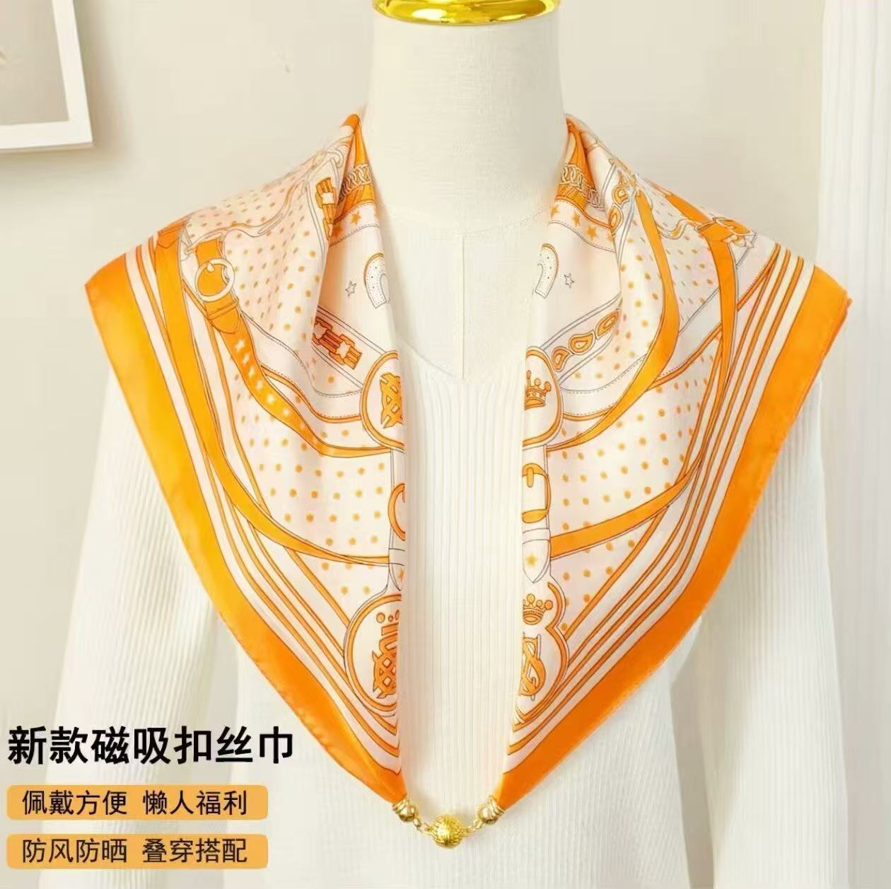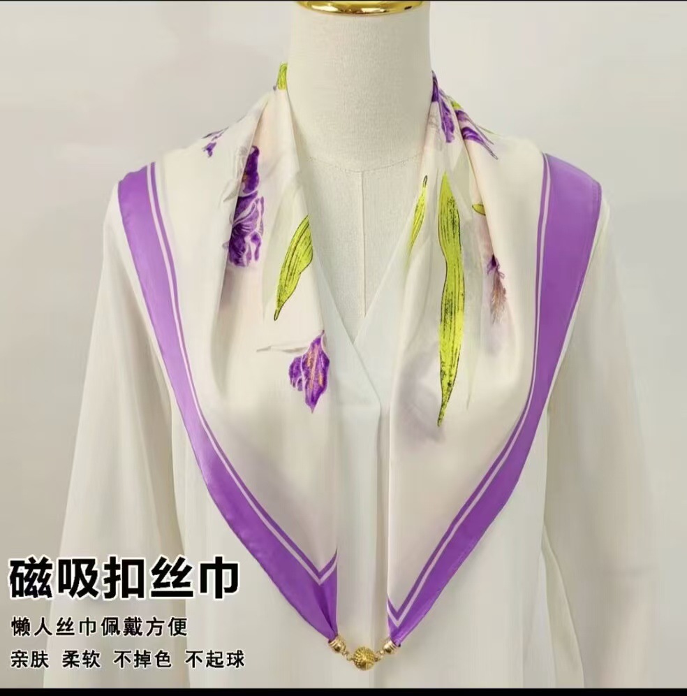 창조적 인 실크 마그네틱 버클 스카프 봄과 여름 새로운 선 스크린 꽃 인쇄 스카프 예술 여성 목 스카프스토어 가기