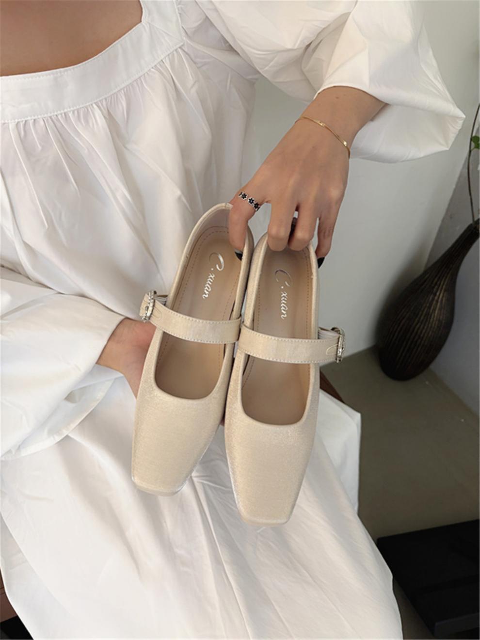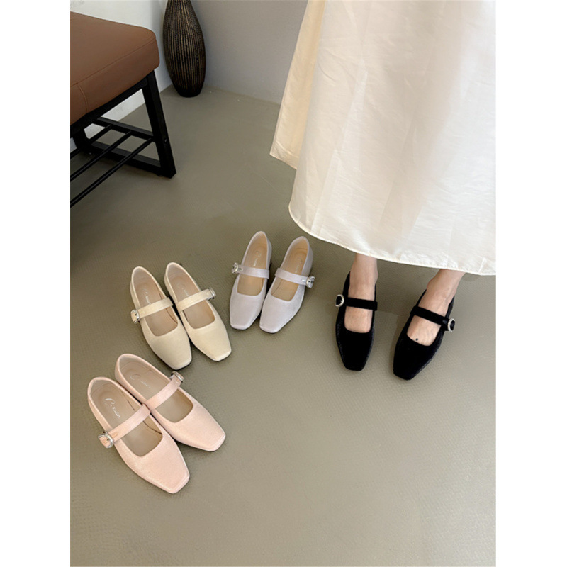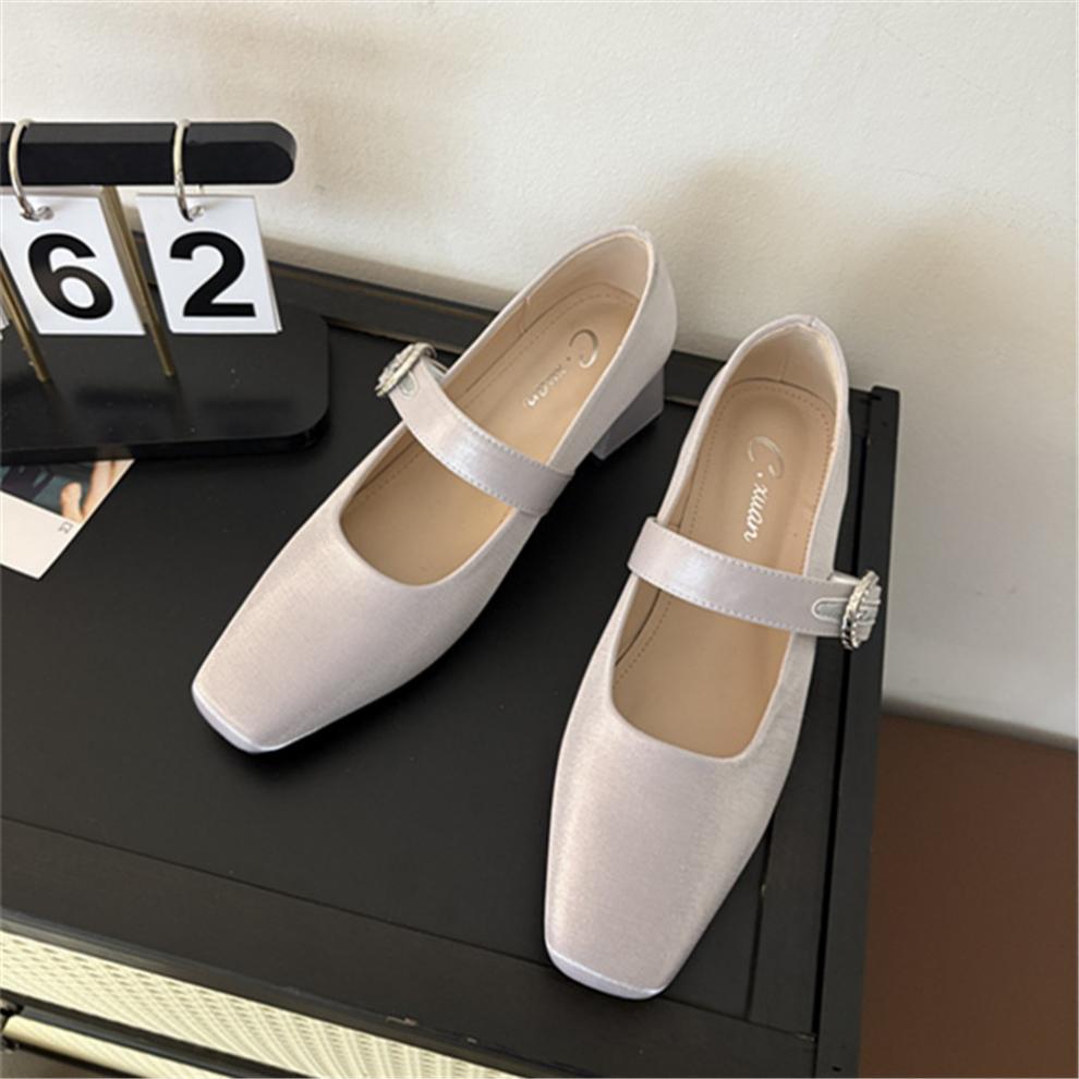 프랑스 스타일 샤넬 스타일 청키 힐 신발 여성의 2025 봄과 가을 새로운 달콤한 우유 신발 발레 신발스토어 가기