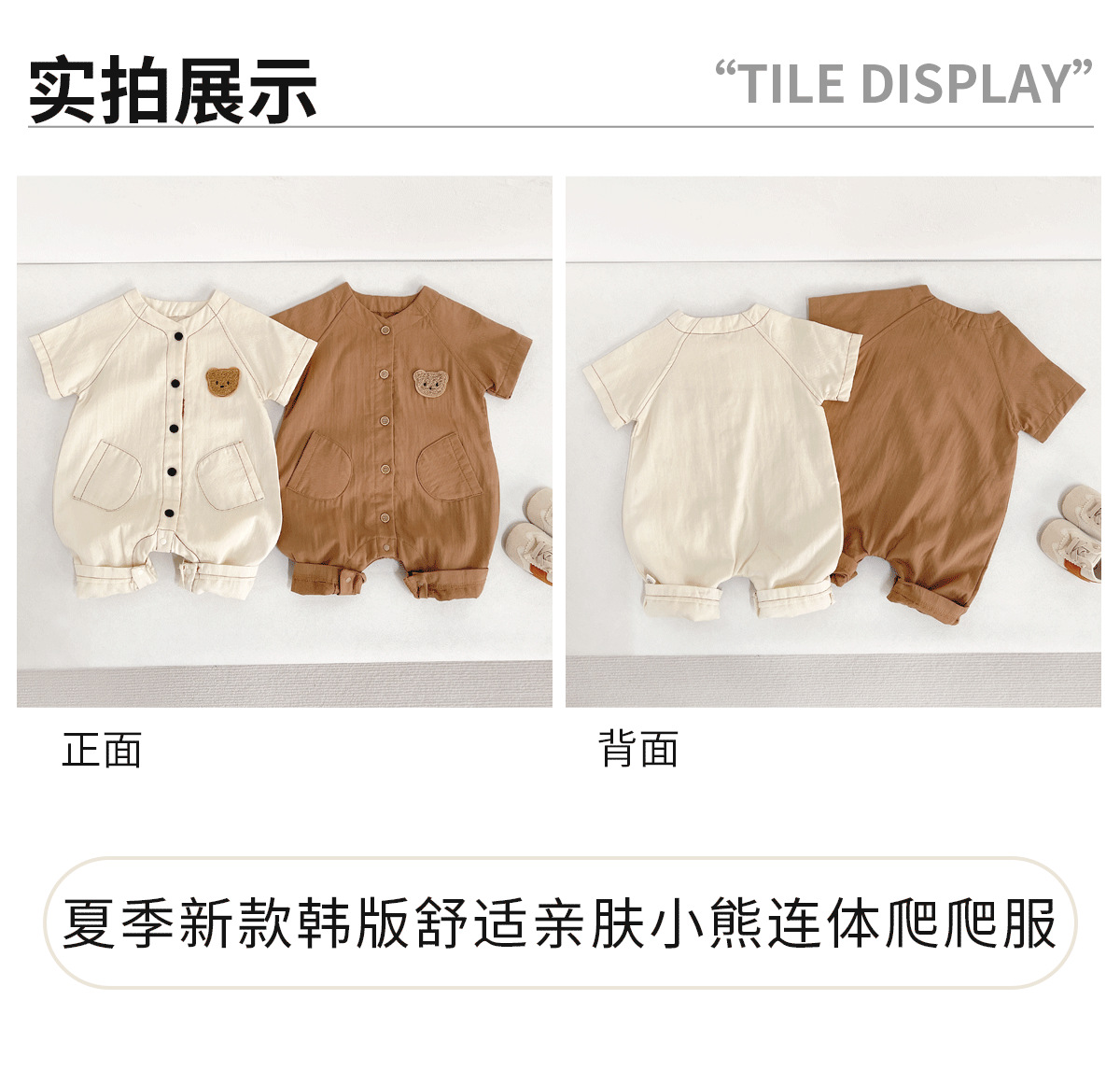아기의 여름 얇은 올 매치 유행 0-1 세 아기 반소매 모자 셔츠 인스 타 그램 스타일 보름달 클라이밍 세트스토어 가기
