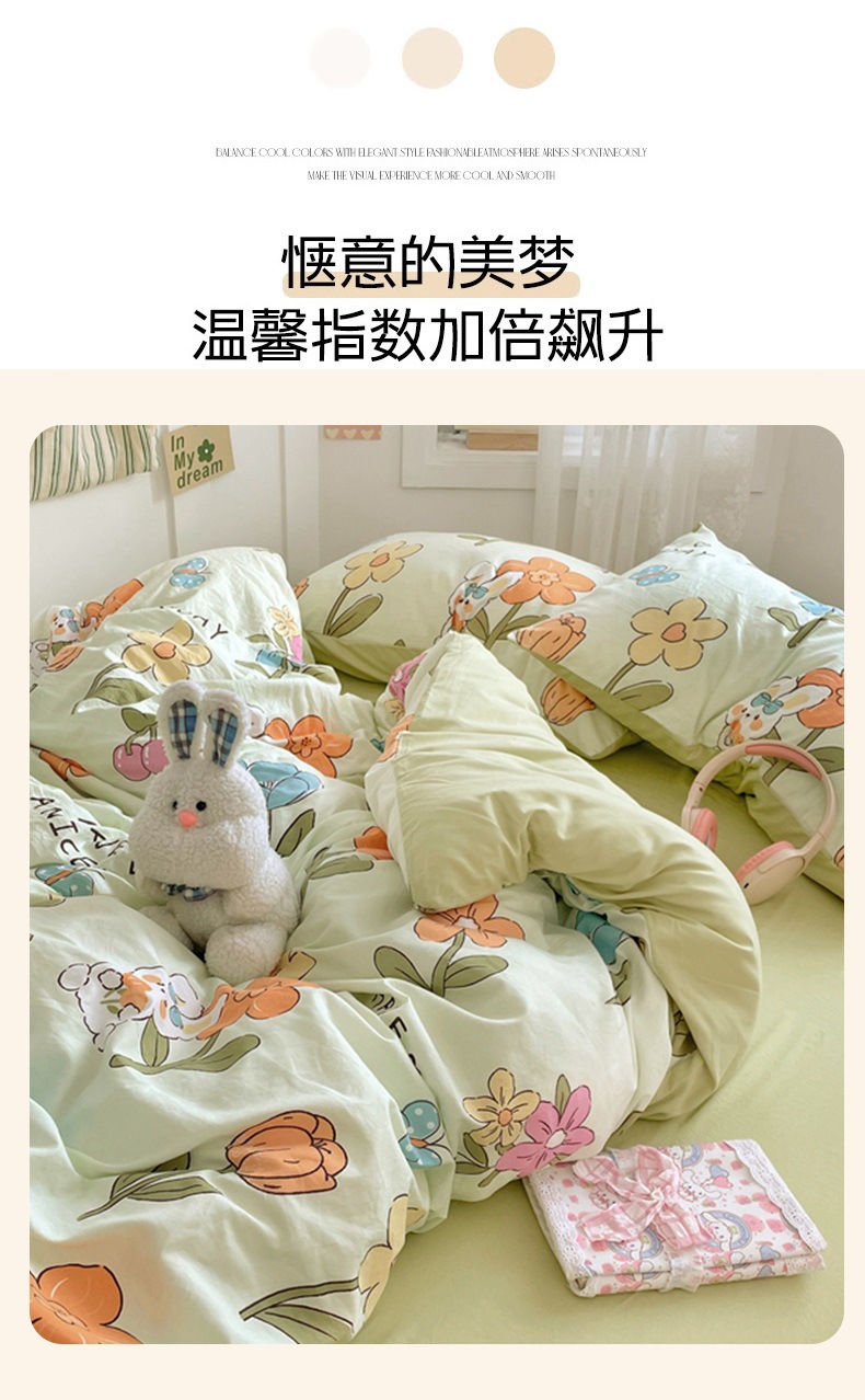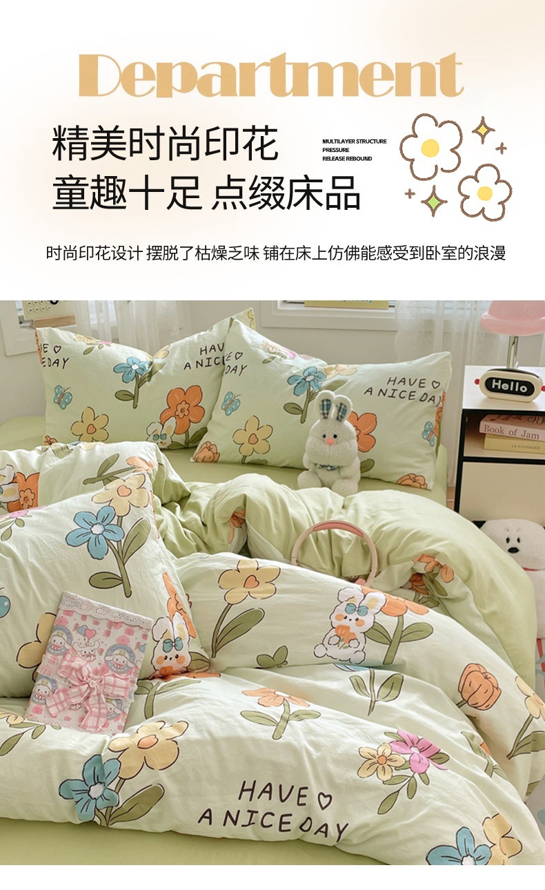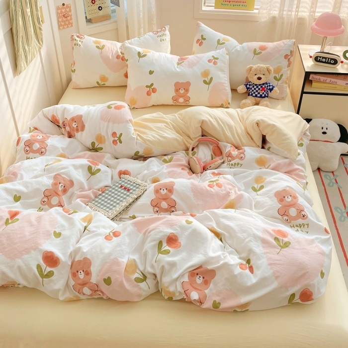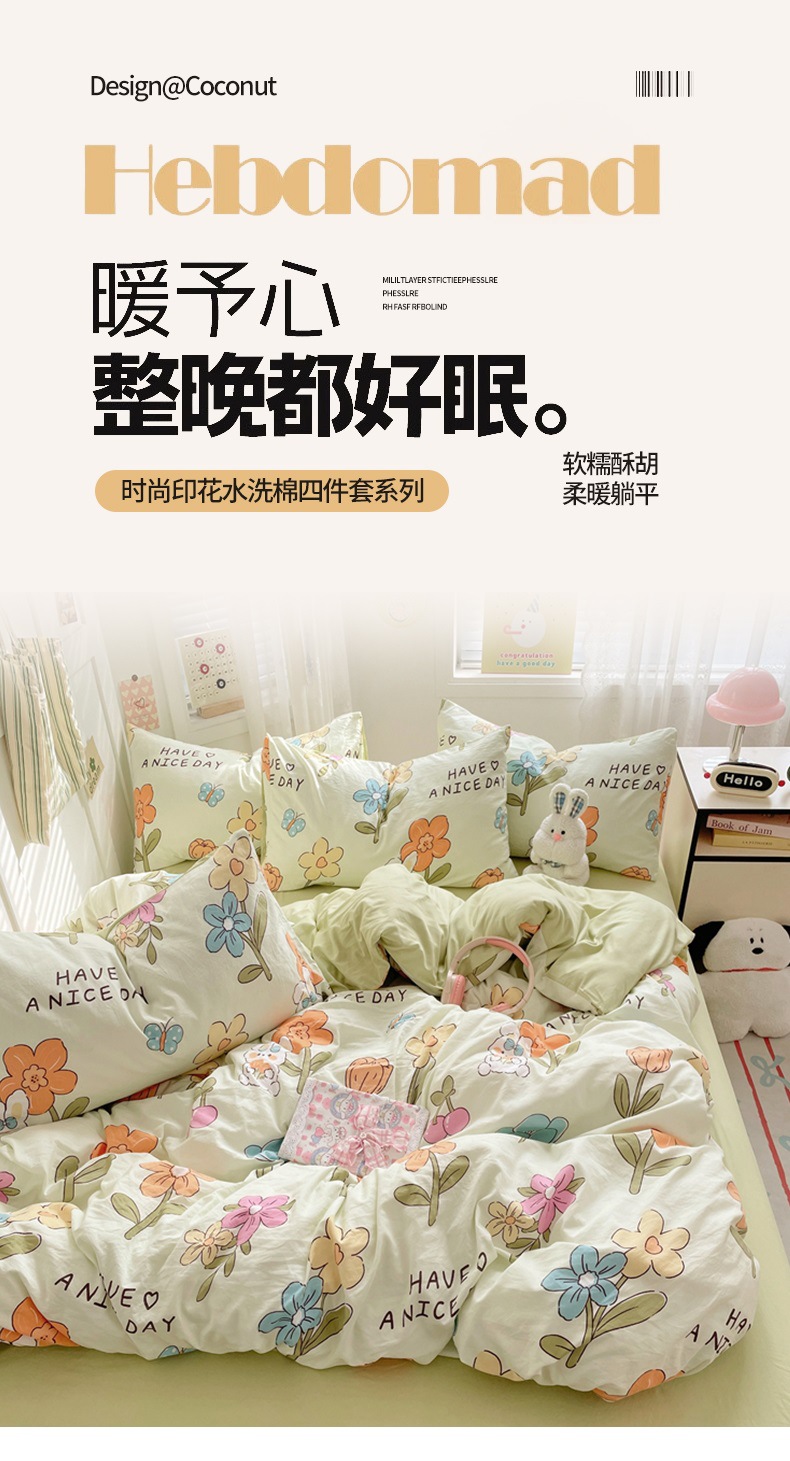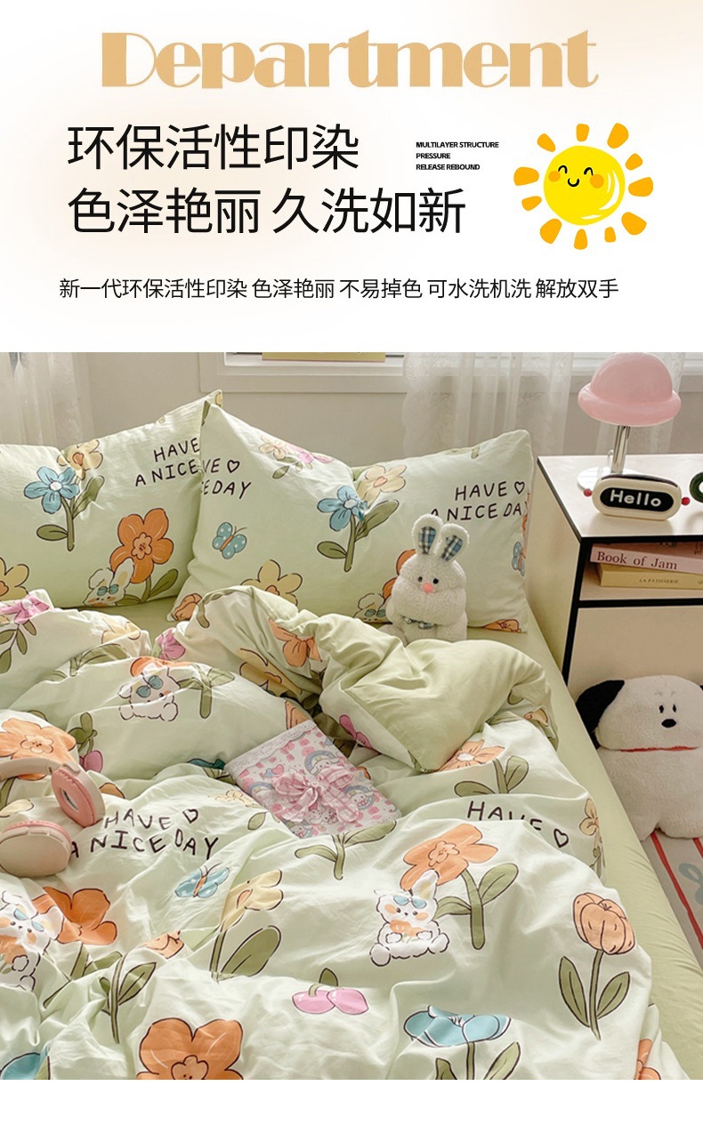 2025 봄과 여름 신선한 인쇄 만화 씻은 면화 4 피스 세트 사계절 유니버설 침구