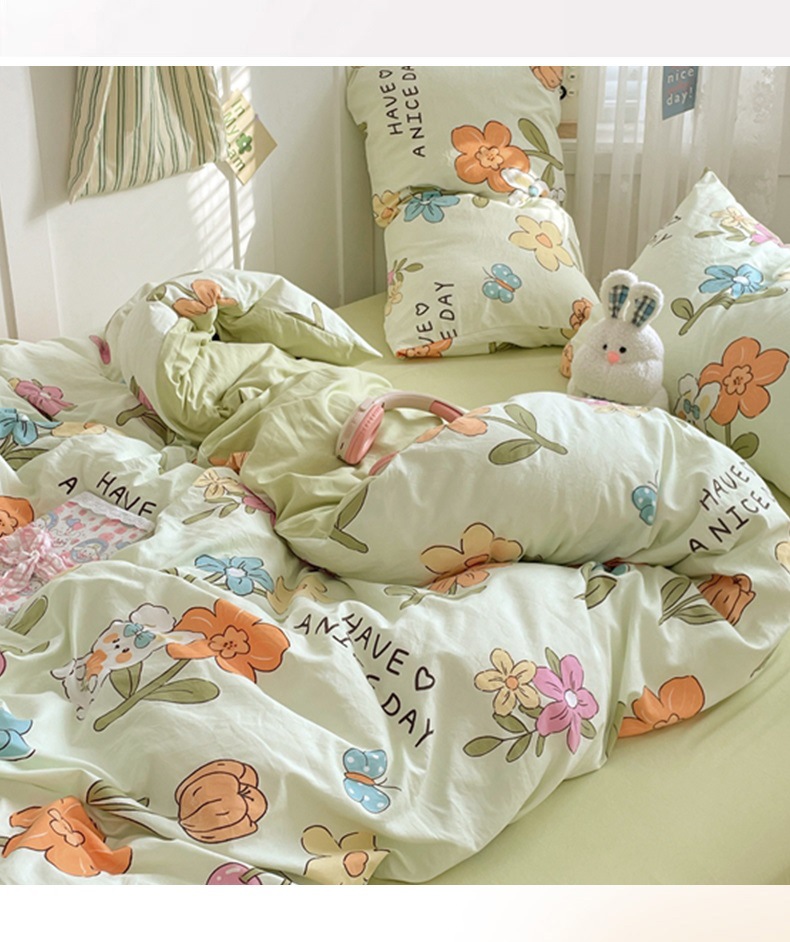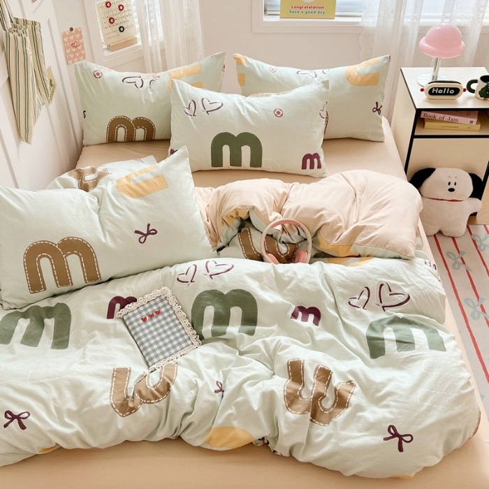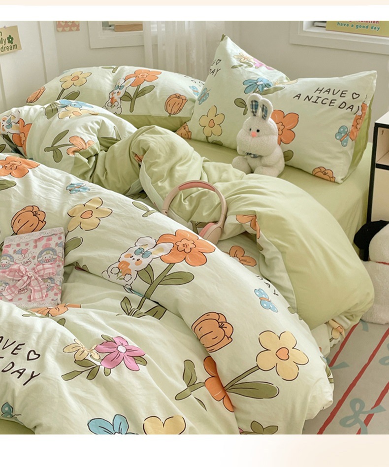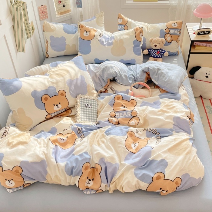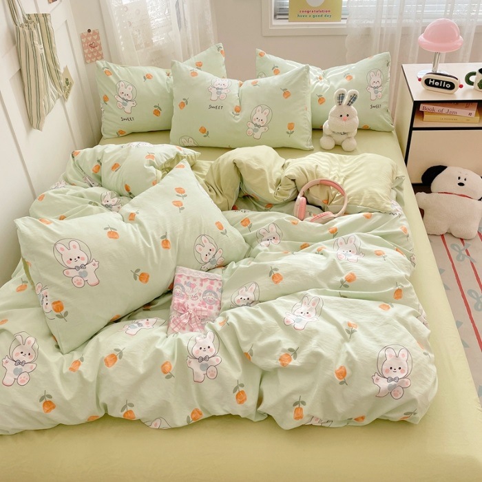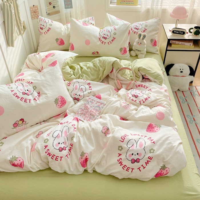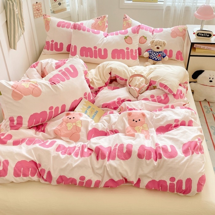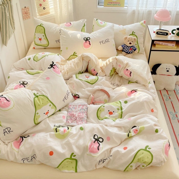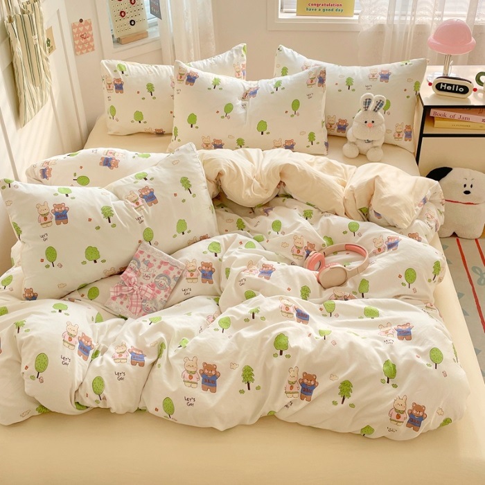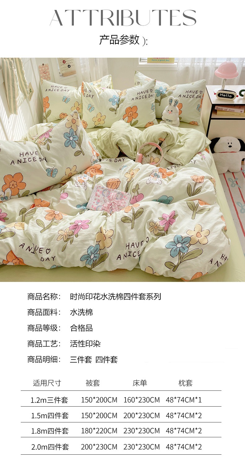 2025 봄과 여름 신선한 인쇄 만화 씻은 면화 4 피스 세트 사계절 유니버설 침구